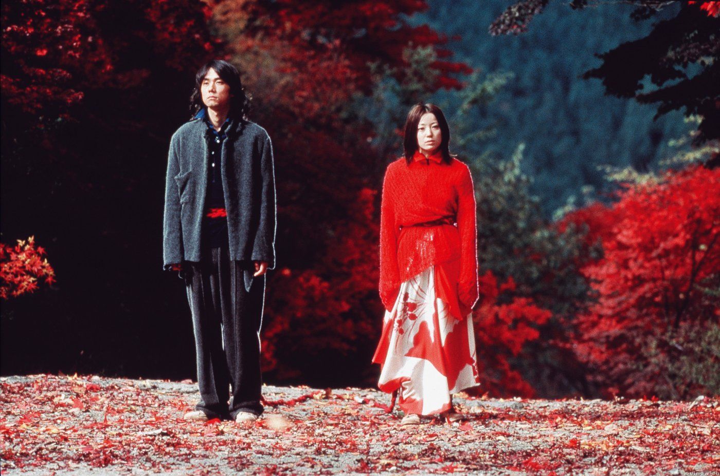 After opening with a bunraku performance featuring an excerpt from the Chikamatsu play Courier For Hell, Kitano moves on to his overarching narrative which connects the tripartite structure in a tale inspired by the classic story The Bound Beggars. This first pair of lovers, Sawako and Matsumoto, wander blankly through the ever changing landscape tied together with a long red rope. The two had previously been a young couple, very much in love, but Matsumoto was pressured into abandoning Sawako to accept a semi-arranged marriage to his boss’ daughter. Distraught, Sawako attempts suicide only to survive but in an almost catatonic state.