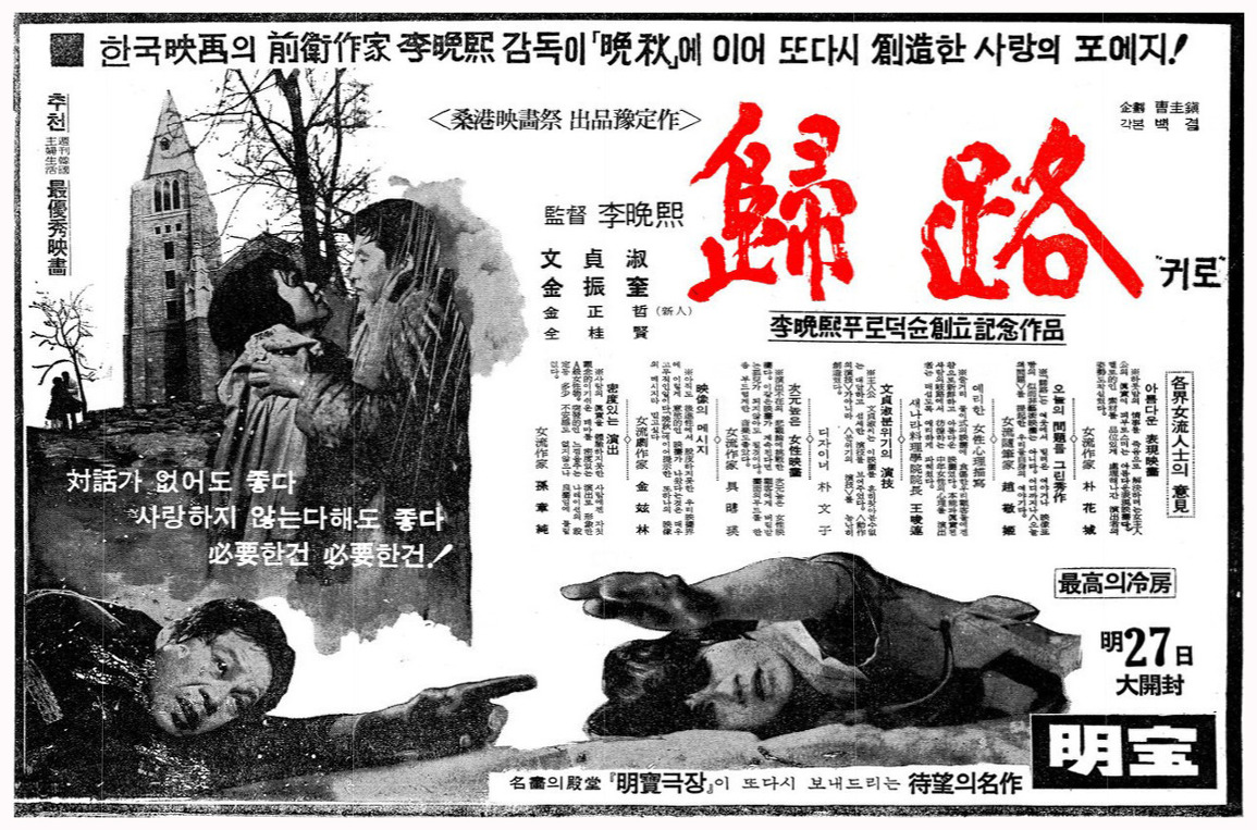 Lee Man-hee was one of the most prolific and high profile filmmakers of Korea’s golden age until his untimely death at the age of 43 in 1975. Like many directors of the era he had his fare share of struggles with the censorship regime enduring more than most when he was arrested for contravention of the code with his 1965 film Seven Female POWs and later decided to shelve an entire project in 1968’s A Day Off rather than tailor it to the concerns of the day. For these reasons it’s not difficult to read a political message into Lee’s 1967 tale of the (im)possibility of escape from a moribund marriage, Homebound (歸路 / 귀로, Gwiro). Like her country, Ji-yoen finds herself at a crossroads in the battle scarred post-war world which asks her to choose between a life of miserable servitude in fulfilment of her duty or one of accepting the painfulness of public disapproval in choosing to strike out for a happier future.