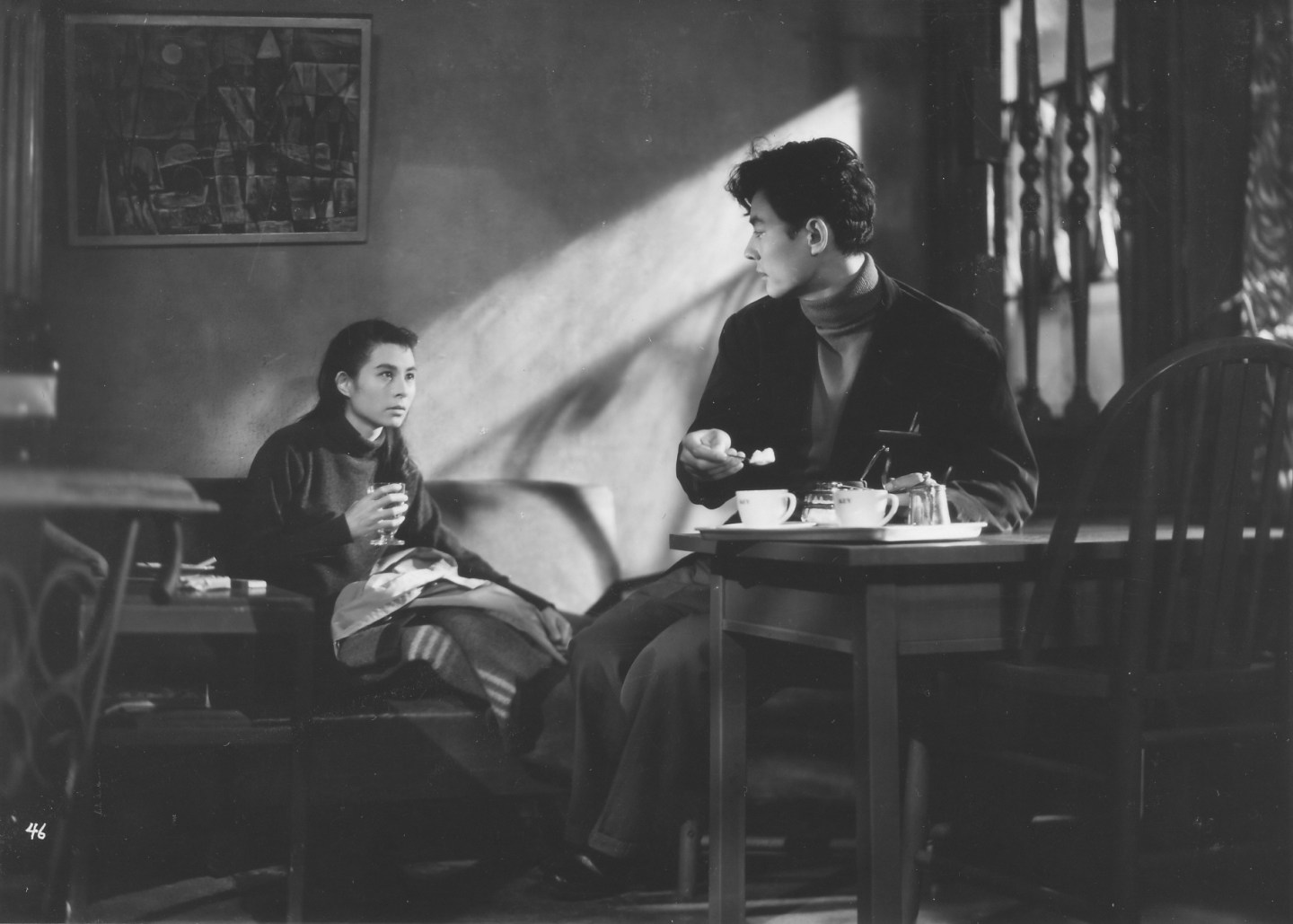Having caught sight of Akiko, Reiko is equally intrigued. Akiko, as Reiko discovers, is having an (unhappy) affair with a much younger medical student, Tatsumi (Fumio Watanabe). Failing to read the emotional landscape of this sorry scene, Reiko regards this information as a juicy piece of gossip in her ongoing campaign to win over Katsuragi. She spies on the lovers, childishly eavesdropping on them in a local cafe, even suddenly delivering their coffee for them so she can get a proper look at Akiko – not that she really sees her or the distraught look on her face, she merely observes her rival – the wicked woman who has betrayed her beloved Katsuragi.
