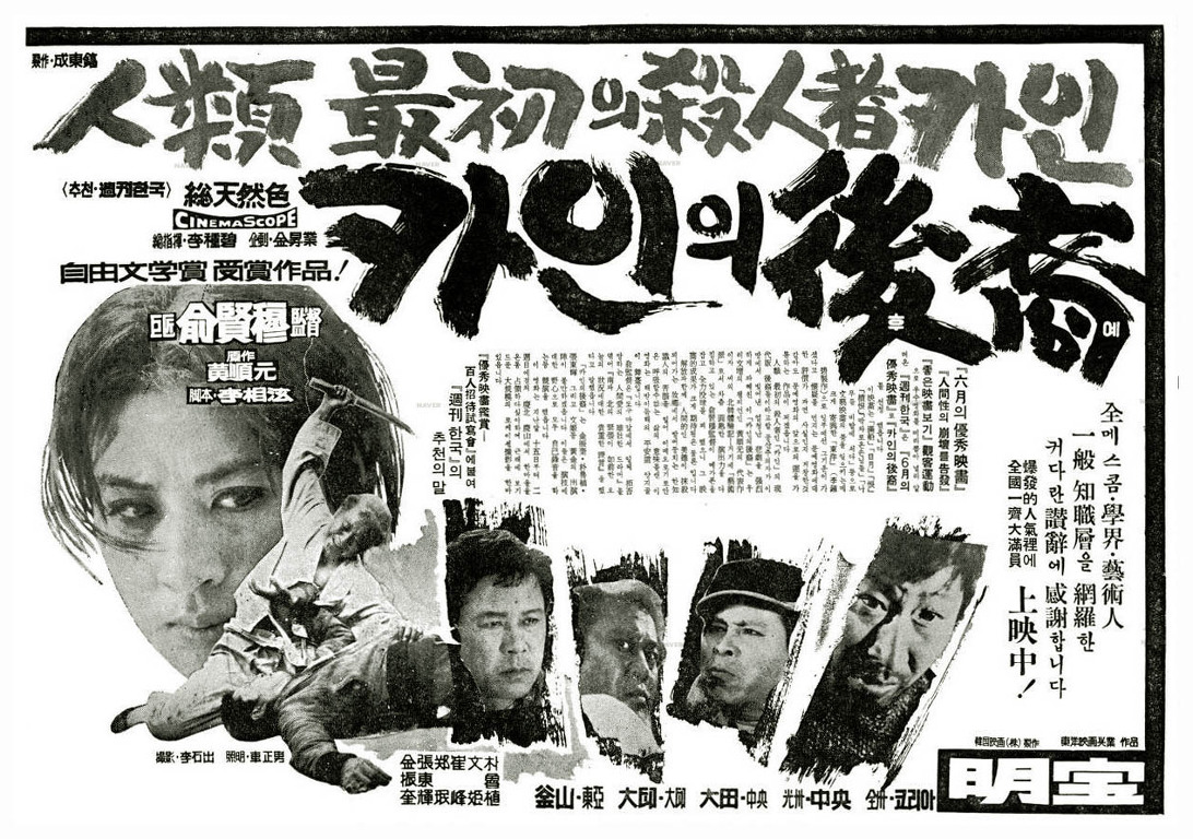Yu Hyun-mok, often regarded as among the more “intellectual” of film directors in Korea’s Golden Age, is also among those to have been arrested for violation of the Anti-Communist laws. Yu was later exonerated and went back to filmmaking as before but it remains true that Yu betrays a little more ambivalence to the anti-communist message so often required than many of his colleagues. That is to say, Yu often leans economically left in his frequent criticism of social inequality and his anti-consumerist stance, but remains socially conservative if with a strong desire for social justice. The Descendants of Cain (카인의 후예 / 카인의 後裔, Kainui Huyea), adapted from a novel by Hwang Sun-won, is as anti-communist as they come, but also offers its share of ironies in painting “communism” as a kind of disease born of greed and self-interest which thrives on fear and eventually consumes those who are seduced by its false promises.