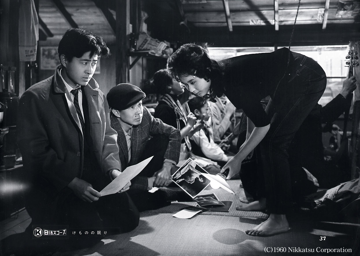 To those of a “traditional” mindset, a woman’s career is her home and she never gets to retire. Men, by this same logic, are killed off at 60 and reborn into a second childhood where they get to indulge their love of fly fishing or suddenly discover an untapped talent for haiku. Seeing as a man often lives at the office, being excommunicated from his corporate family can seem like a heavy penalty for those who’ve devoted their entire existence to the salaryman ideal. So it is for the old timer at the centre of Seijun Suzuki’s 1960 mystery thriller, The Sleeping Beast Within (けものの眠り, Kemono no Nemuri) in which the sudden disappearance of a model employee sparks his daughter and her dogged reporter boyfriend to investigate, unwittingly discovering a vast drug smuggling conspiracy headed by a dodgy cult leader.