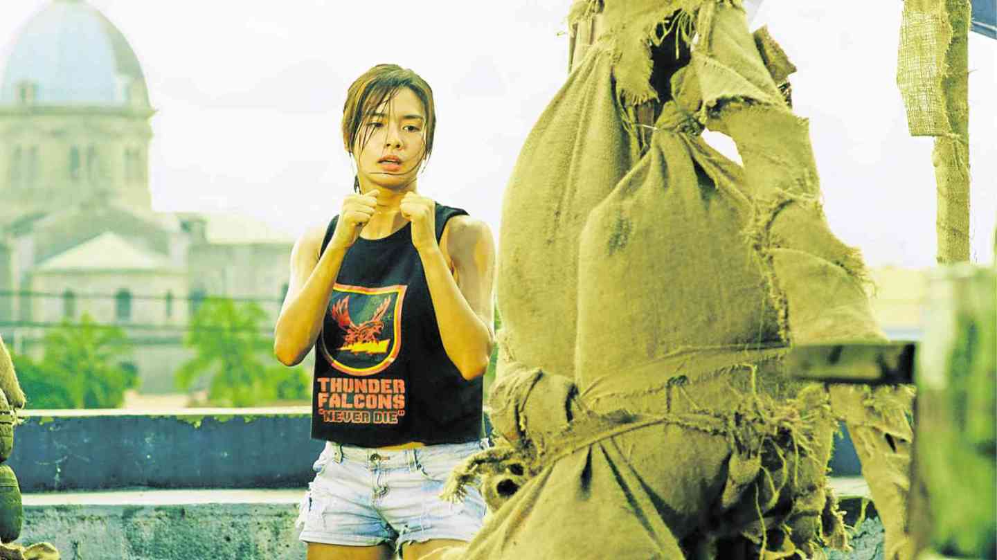 Our heroine, Kray (Erich Gonzales), is a principled young woman who prides herself on her sense of justice, her good heart, and her ability to survive. Each of these qualities will stand her in good stead in the chaos that’s about to engulf her but for the moment they’re all that sustains her in her frustrating life as a stunt double for low budget movies. Berated by a director (Lehner Mendoza) who seems like he just wants to shout at someone while the “real” actress (Dani Baretto) blithely insists the stunt woman is an unnecessary waste of money, Kray can do little more than grin and bear it, unable even to make much of a fuss when she realises she’s only getting half pay on account of the director’s bad mood. She needs the money because her father (Baldo Marro) is ill and needs medical treatment, though he urges her to give up the stunt work which is dangerous and leaves her feeling humiliated to take a low paid but steady job working for a friend’s catering company.