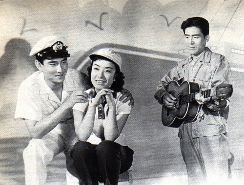 Hibari Misora turned 20 in 1957, but she’d already been working for eight years and was well on her way to becoming one of the most successful stars of the post-war era. The Deep Blue Sea (青い海原, Aoi Unabara) is one of her earliest grown up musical dramas and finds her sharing the bill with another of the biggest acts of the day in Hachiro Kasuga who, despite being stuck in second lead limbo, does the bulk of the musical heavy lifting. It also sees her star opposite an actor who would become her frequent leading man which might come as something of a surprise to those most familiar with his later work – Ken Takakura, then very fresh faced and playing the juvenile lead.