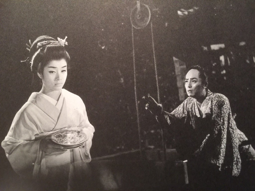 Nevertheless, it’s a promise which can’t be kept. The Aoyama family is in trouble and the obvious answer is to make a good match for Harima that will restore both status and wealth. When one of Harima’s friends is ordered to commit seppuku for the exact same petty punk antics Harima gets up to all the time matters come to a crunch. To keep him safe, Harima’s uncle arranges a marriage with an influential family. Harima tries to refuse but he too is more or less powerless even if he weren’t torn between the obligation to his samurai code and his illicit love for servant girl whom he would never be permitted to make his wife. To cement the match, Harima’s uncle has prepared 10 precious plates as a dowry, but Okiku, catching sight of Harima’s bride-to-be, drops one and breaks it in two. Her fate is sealed. Harima draws his sword on her and she backs away, eventually falling into the well and dying there.