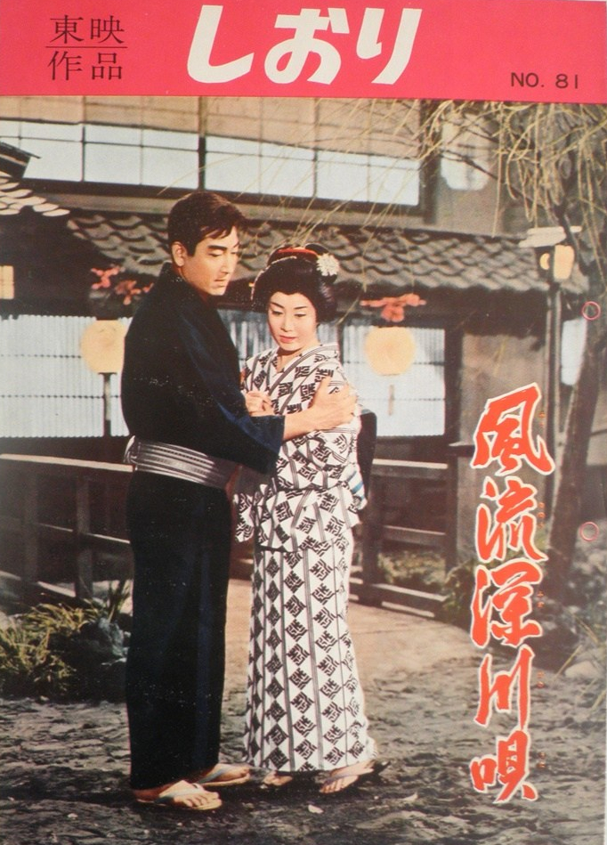 Deep River Melody poster 2An actor with a long and distinguished career, So Yamamura first stepped behind the camera in 1953 with an adaptation of the famous proletarian novel by Takeji Kobayashi, The Crab Cannery Ship (later adapted by Sabu in 2009), and eventually completed six features. Deep River Melody (風流深川唄, Furyu Fukagawa Uta), released in 1960 and adapted from a novel by Matsutaro Kawaguchi, was last among them and starred post-war singing sensation Hibari Misora in the leading role. Hibari Misora was a frequent presence at Toei through the ‘50s and ‘60s, appearing in a series of musical dramas both period and contemporary but Deep River Melody is among the small number of purely dramatic pieces in which she starred which do not feature any musical numbers even over the opening and closing.