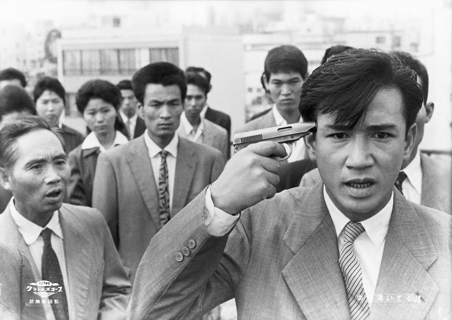 The action opens with a grandstanding rooftop speech from a former CEO to his distressed workforce informing them that because of “indifferent capitalism” this small business is going bust and everyone’s out of a job. Then, dramatically, our hero Kiguchi (Keiji Sada), steps out with a pistol and threatens to shoot himself, proclaiming that he no longer cares for his own life but doesn’t want anyone else to lose their job. Another worker, Kanai (Masao Oda), tackles Kiguchi and the gun goes off. Thankfully, he is only mildly wounded but Kiguchi’s case reaches the papers who make it into a human interest issue exemplifying the precarious economic conditions of the modern society. While he’s still somewhat current, an enterprising advertising executive hits on the idea of getting Kiguchi to act as the face of their campaign, bizarrely attempting to sell life insurance with the image of a man putting a gun to his head while proclaiming that “it’s high time everyone is happy”.