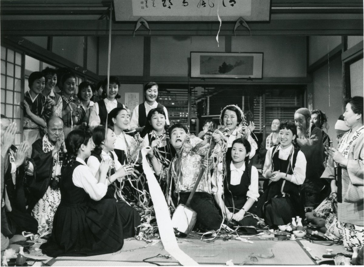 The post-war world was one rife with trouble. By 1958, however, the horizon was perhaps beginning to brighten which means it was no longer too soon have a good laugh about how awful life could be. Nothing particularly awful happens in Shiro Toyoda’s cheerful comedy The Hotelman’s Holiday (駅前旅館, Ekimae Ryokan), the first in a series of “Ekimae” or “station front” movies produced by Toho, but it does amusingly rip a leaf out of Toei’s book in having its community of feckless hoteliers band together to stand up to greedy yakuza stand-in barkers who are actively destabilising the local economy with their underhanded ways.