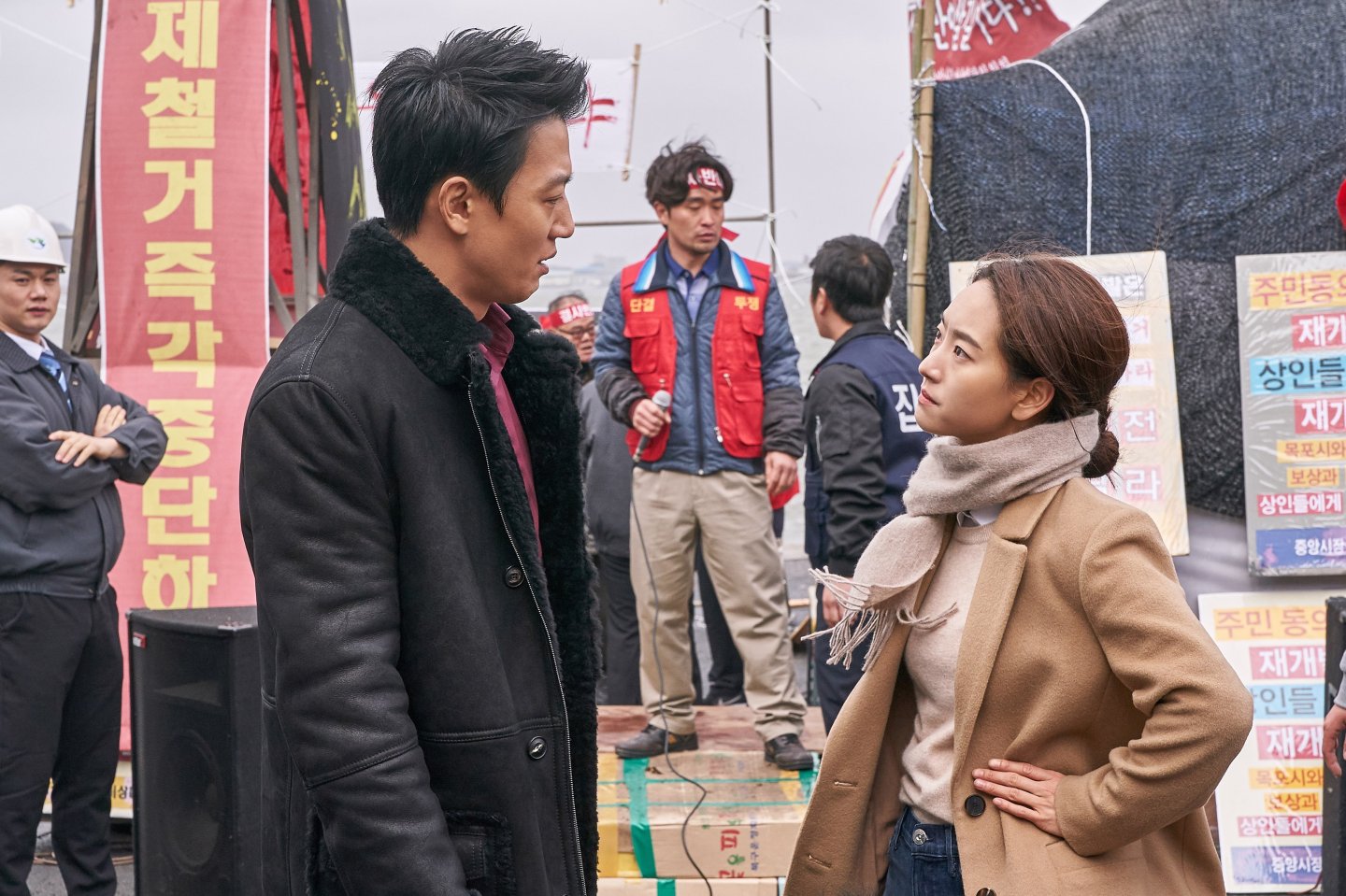 Se-chool (Kim Rae-won) is a notorious thug with a traumatic past currently working with a local gang hired to clear a small protest of stall owners trying to cling on to a traditional market space in working class Mokpo where a developer wants to build a theme park and upscale skyscraper. A feisty young lawyer, So-hyun (Won Jin-a), is working with the protesters on their case and has no problem telling the gangsters where to get off. Impressed, Se-chool is smitten and starts to wonder if he’s on the wrong side but his attempts to get So-hyun’s attention – being strangely nice to the protestors, buying everyone lunch etc, spectacularly backfire. Only when he hears about another man, Hwang-bo (Choi Moo-sung), who used to be a gangster but has now reformed and become a social justice campaigner running a small not-for-profit cafe serving meals to the vulnerable, does he begin to see an opening, vowing to give up the gangster life and commit himself to serving the people of Mokpo.