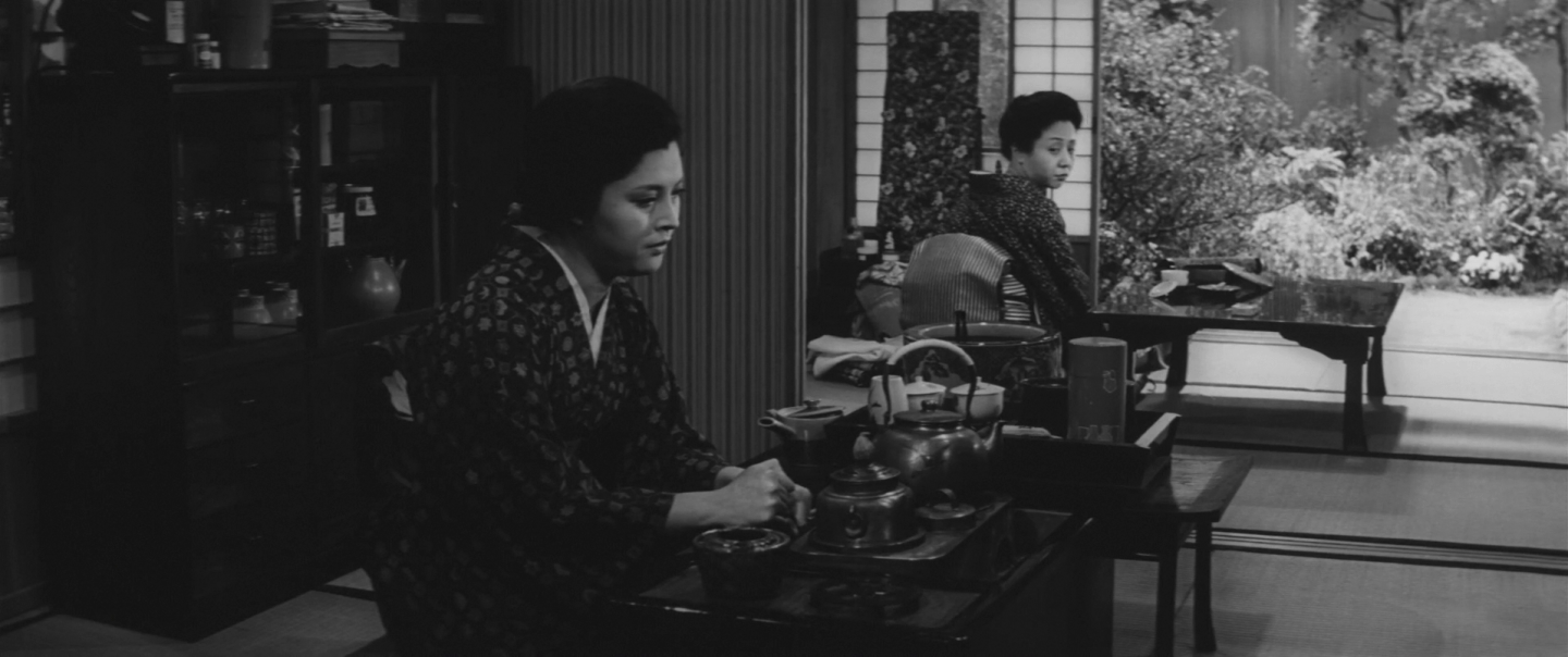 We open in late Meiji with a funeral interrupted by news from the Russo-Japanese war. Shortly after, young widow Ikuyo (Nobuko Otowa) argues with her mother, Tsuna (Kinuyo Tanaka), over custody of her five-year-old daughter Tomoko. Ikuyo is planning to remarry and her new husband has three children of his own. Fearing Tomoko would be an inconvenience, Ikuyo proposes to make her heir to her mother’s family, leaving her behind in her grandmother’s care. Though Tsuna loves Tomoko dearly, she resents her daughter’s intention to abandon them just because she’s got a better offer, and perhaps privately wonders how long she’ll actually stick it out for seeing as, as we later see, she has a strong tendency to give up when the going gets tough.