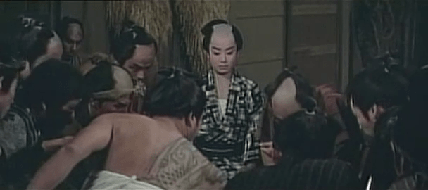 Meanwhile, despite outwardly dressing in manly, action friendly outfits, this Oshichi is one more romantically inclined, fretting over the fate of her brother’s retainer Hyoma (Chiyonosuke Azuma) who, she thinks, has left his employ and become a drunkard. The drunken downward spiral of his life turns out to be a kind of undercover assignment, but provokes a little jealousy in Oshichi as she sees him “protecting” other women at a nearby restaurant, one of whom turns out to be Misuzu who holds a few more pieces of the puzzle. Vowing to save Misuzu and stop the conspiracy, Oshichi adopts a male persona complete with top knotted wig and takes on an entire boatload of sailors who stupidly tell her that they’re shipping out that very night.