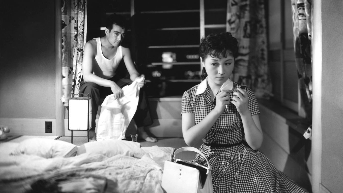 The film opens, as so many of Nomura’s films do, with a journey as two dogged Tokyo cops board a long distance train from Yokohoma travelling all the way down to provincial Kyushu which might as well be a world away from the bustling metropolis. Posing as motor salesmen, they take a room at a local inn overlooking the home of a melancholy housewife, Sadako (Hideko Takamine), the former girlfriend of a man on the run, Ishii (Takahiro Tamura), suspected of being in possession of a gun used to kill the owner of a pawn shop during a robbery. The younger of the policemen, Yuki (Minoru Oki), declares himself faintly disappointed with Sadako, complaining that she looks older than her years and is in fact quite boring, “the epitome of ordinary”.