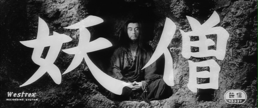 As the film opens, Dokyo (Raizo Ichikawa) emerges from a shallow cave amid many other caves after meditating for 10 years during which he reached a higher level of enlightenment and obtained mystic powers. Now he thinks it’s time to continue the teachings of departed mentor Doen and use his abilities to “actively do good and save the masses”. Before that, however, he does some not quite Buddhist things like turning a rat into a living skeleton, and twisting a snake into a tangle. In any case, he begins roaming the land, miraculously healing the sick. While reviving a thief who had been killed by samurai after trying to make off with a bird they shot, Dokyo is spotted by a retainer of the empress who brings news of his miracles back to her closest advisors.