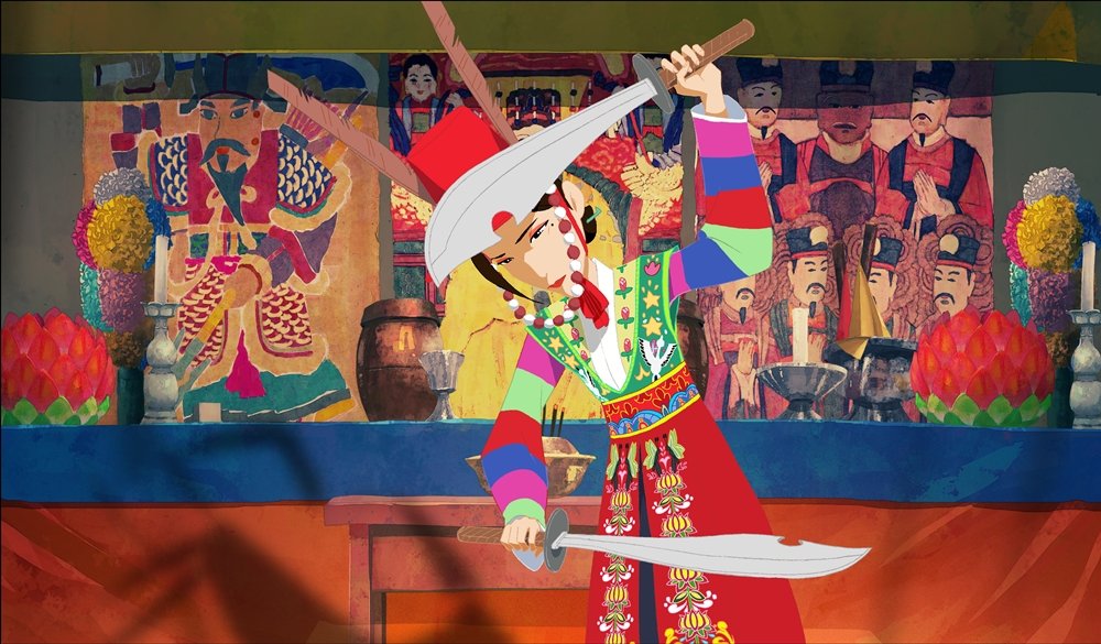 The overriding sentiment is one of futility in an acceptance that progress will always win in the end, as reflected in the narrator’s wistful lament of his noble family’s gradual decline. Seemingly aimed at a wide audience not exclusively adult, Ahn tackles some difficult themes from alcoholism to incestuous desire not to mention the more complex meditation on the loss of the feudal past and the costs of modernity while continuing to express the conflict musically in his use of traditional singing styles in Mohwa’s rituals and a more conventional broadway register in Wook-Yi’s passionate defences of his faith. While the frequent flights into song may seem incongruous, they are perhaps more common in Korean animation of this kind than they might be in that from other cultures, particularly in films not expressly aimed at younger children who are unlikely to engage with the weighty themes despite the simplistic yet often beautiful aesthetics which present a less complicated view of the feudal past as one of idyllic pastoralism.