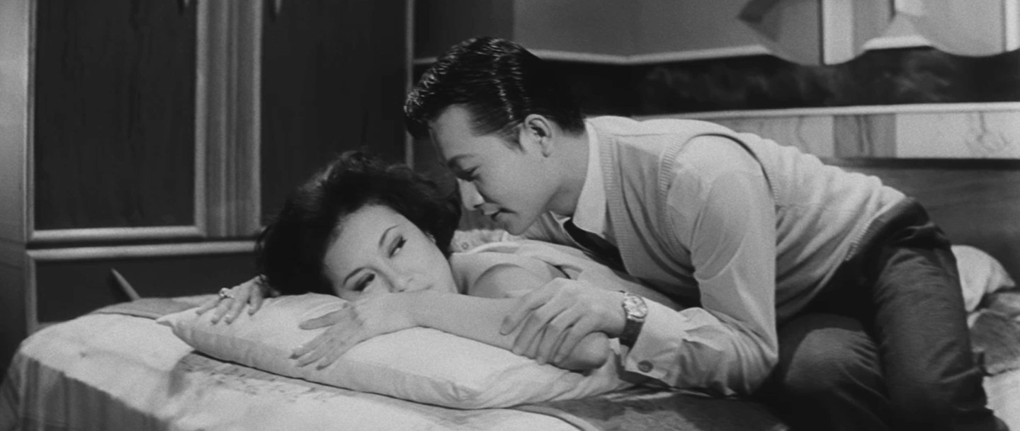 In some senses, it doesn’t really matter. The society here is so inherently corrupt that no one is really “innocent” except perhaps the pure-hearted roommate who remains shocked and disgusted by the results of his police detective friend’s investigations and innocently in love with the chairman’s unobtainable daughter. The ambition that comes from the widening wealth gap is instantly on display as the film opens with Lap in bed with Tai-Giok but brushing off her suggestions that they marry by reminding her she’ll be the most comfortable of mistresses when he marries the chairman’s daughter. In another kind of film, they would be our central couple – their pure love corrupted by post-war greed, but we later realise neither of them is very much in love at all and their “relationship” must be based on some other factor. Lap isn’t betraying Tai-Giok to marry the boss’ daughter, though there may be other casualties of his all too willing complicity in an increasingly amoral economy which sees him gleefully accepting kickbacks and wining and dining clients in restaurants where you can hire scantily clad dancers to entertain you while you eat.