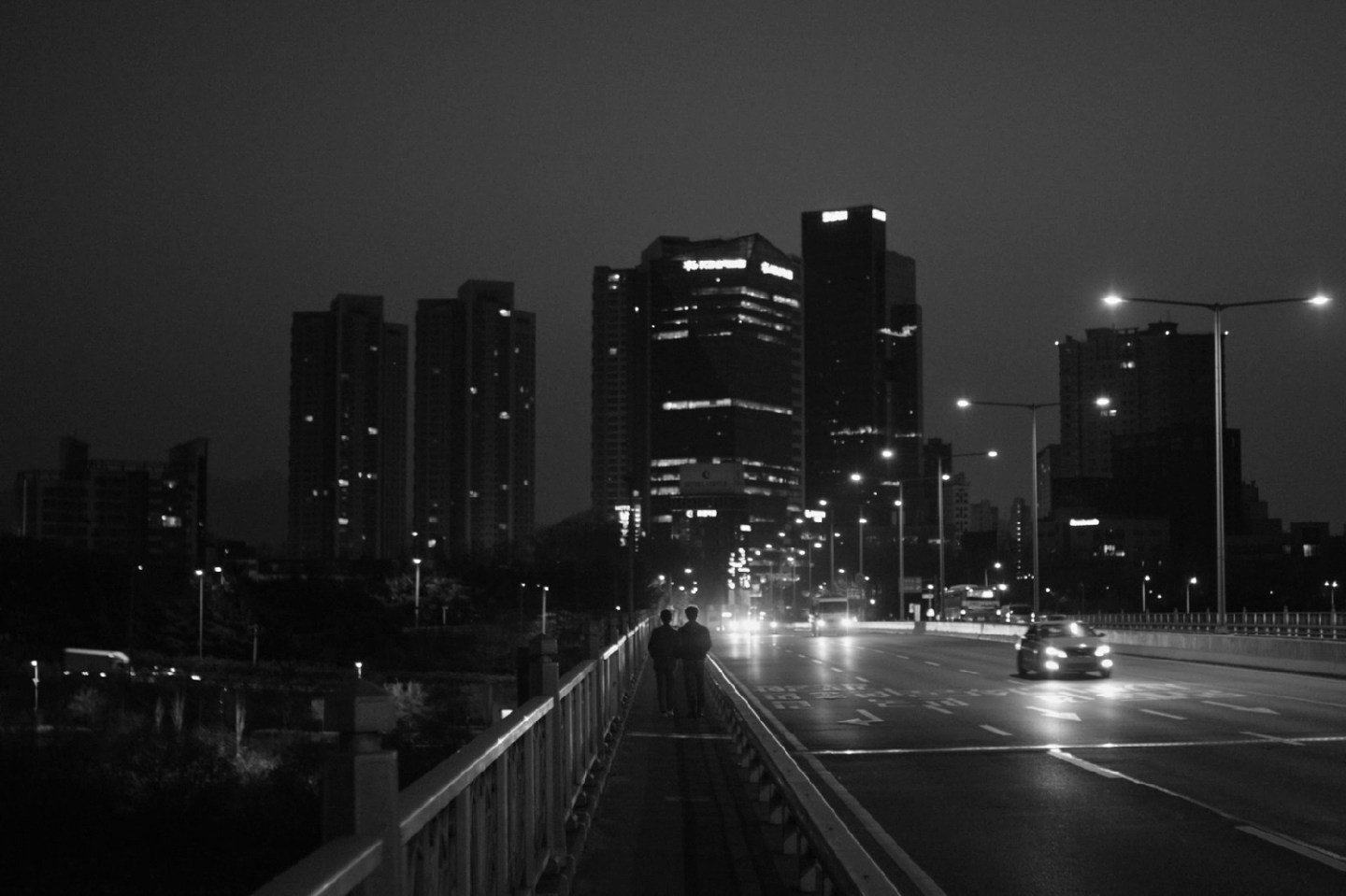 Now in his 30s, Jihoon (Lee Seung-hun) is still an “aspiring” actor trapped in exploitative part-time work in which he has to actively fight to be paid the money he is rightfully owed. He finds himself hanging out in the old rehearsal room from his student days as if nothing had changed in the decade since he graduated. Meanwhile, his nine-year relationship with Areum (Han Hae-in) which began when they were both student actors is about to come to an abrupt end. She’s already “grown up” with a regular job earning real money and is sick of Jihoon’s fecklessness. Areum wants to get married and settle down, but not with Jihoon. Approaching another uni friend now apparently a civil servant (Lim Young-woo), Jihoon is offered a strange new job which ironically reflects the pressures of the world in which he lives. In order to combat Seoul’s notoriously high suicide rate, an experimental programme is being set up in which a squad of samaritans will patrol the local bridges overnight looking for people who seem to be in distress and may be thinking of taking their own lives.