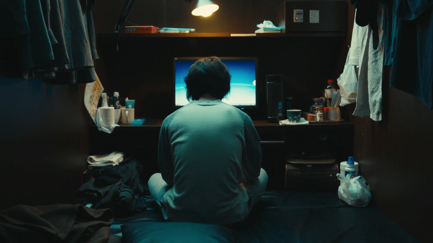 Riko, meanwhile, seems to think differently eventually spring-boarded into the determination to change her life escaping the world of sex work and manga cafes she finds disappointing to chase something better though we might wonder what exactly it is she finds as she crosses Shibuya scramble inches from an oblivious Goto who might dream of sailing overseas but remains ironically landlocked to the local area. Opening with a jaunty detachment, the whimsical score perfectly matching the surreality of life at the manga cafe, Gokan’s screenplay becomes progressively darker as Goto finds himself at the mercy of his times trapped by economic malaise, running aground while the river flows on all around him.