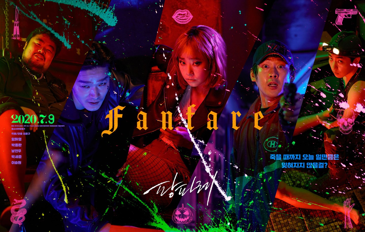 “I’m the only one who gets out alive!” insists an accidental antagonist in Lee Don-ku’s tense theatrical chamber piece, Fanfare (팡파레). The ironic title perhaps hints at the surreal pettiness of four criminals as they find themselves engaged in a pointless battle to the death trapped in a record shop / cafe bar one very bloody Halloween, but Lee’s drama is less concerned with their darkly comic fecklessness than with the rapidly changing power dynamics of an uncertain situation largely determined as they are by initial impressions and societal prejudices.