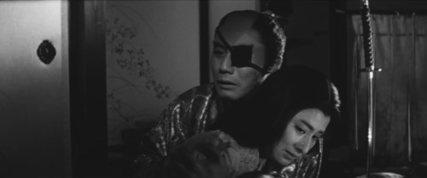“I’m no puppet, I no longer need a puppeteer” Kyonosuke exclaims drawing strength from embracing his new identity as a samurai lord, but perhaps overreaches himself in ambitious desire failing to see the various ways he is still merely a pawn in a bigger game as Yasutaka himself once was because the lord is only ever an empty vessel and far more expendable than might be assumed. Princess Teru (Hizuru Takachiho), Yasutaka’s conquest bride, declares that she is “just a doll, the strongest will win me” but is of course playing a role herself, one which she does not desire but has been thrust upon her while her cousin, Sadamitsu (Shigeru Amachi), is engaged in a much more active piece of long form role play. Only the lord’s concubine (Masayo Banri) sees through him, falling for the gentle peasant after the rough lord who toyed with her, but their complicated love eventually seals his fate even as he believes it offers him victory. Kyonosuke became a samurai to escape his lack of agency but is arguably much less free than he ever was, driven slowly out of his mind by his fractured sense of identity and realising that in killing the only man who knew who he “really” was, he also killed himself.