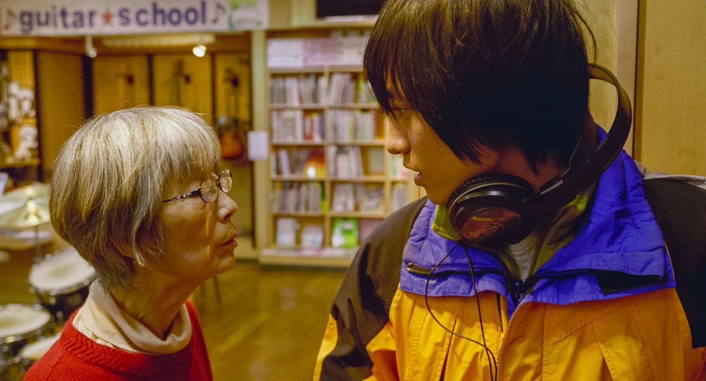 This particular young man (Kisetsu Fujiwara) is an “ore ore” scammer, a popular form of telephone fraud in which the caller rings an elderly person and claims to be their grandson explaining in a panic that they’re in trouble and need money right away. The elderly person on the other end of the phone usually complies, either too estranged to realise that it isn’t their grandson’s voice or too anxious to give it much thought. On this particular occasion, however, the woman that the man rings after arriving on the small island of Amakusa appears not to understand, believing that he really is her grandson, Shota, suddenly arrived for a visit. The young man ends up going along with it, warming to the old woman, Tsuyako (Chisako Hara), and more or less forced to stay after she hides his phone and wallet (which contains money he’d already stolen from the honesty box in her music store).