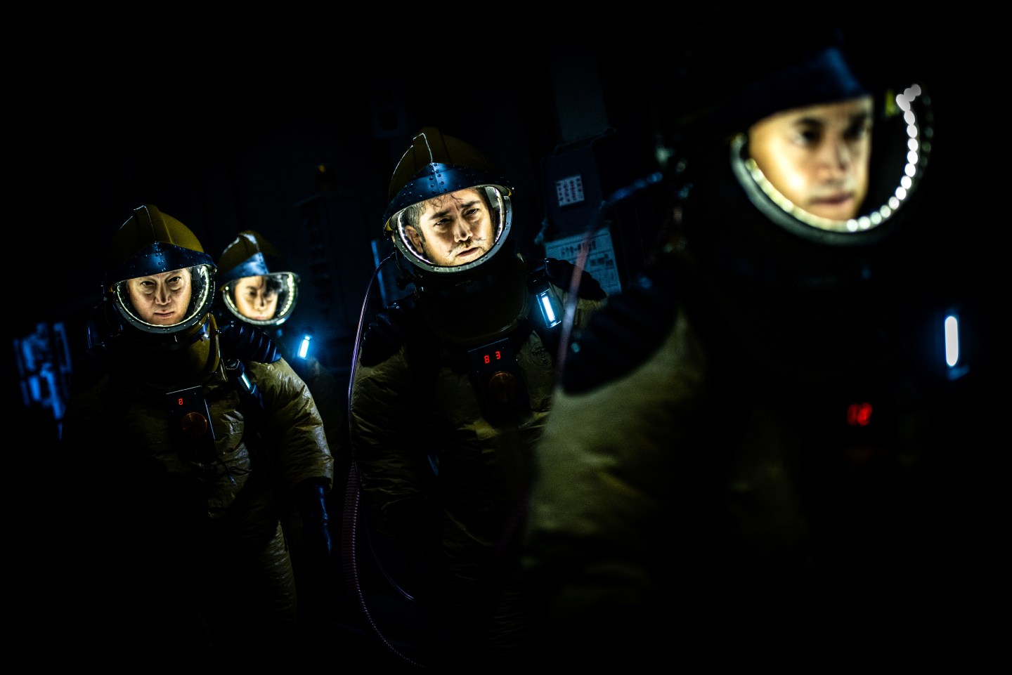 Set in the immediate aftermath of the tsunami, the first of the three tales follows a series of selfless engineers sent in to tighten a bolt on a leaking tank. They are informed their suits will protect them but not completely, they have only half an hour of oxygen, and should work in pairs for no longer than a minute before changing over. The older men tell the younger to wait behind, hoping to spare them from harm while the young men bristle wanting to do their bit. In any case, one of the young men later freezes, his feet rooted to the spot as if under some kind of spell while his friend begins to go quietly mad when a second bolt works it way out seconds after he’s fixed the first. The unnamed chief (Masatoshi Nagase) refuses to return with his team, staying to ensure he’s done all that can be done but in the end they cannot stop what is already in motion.