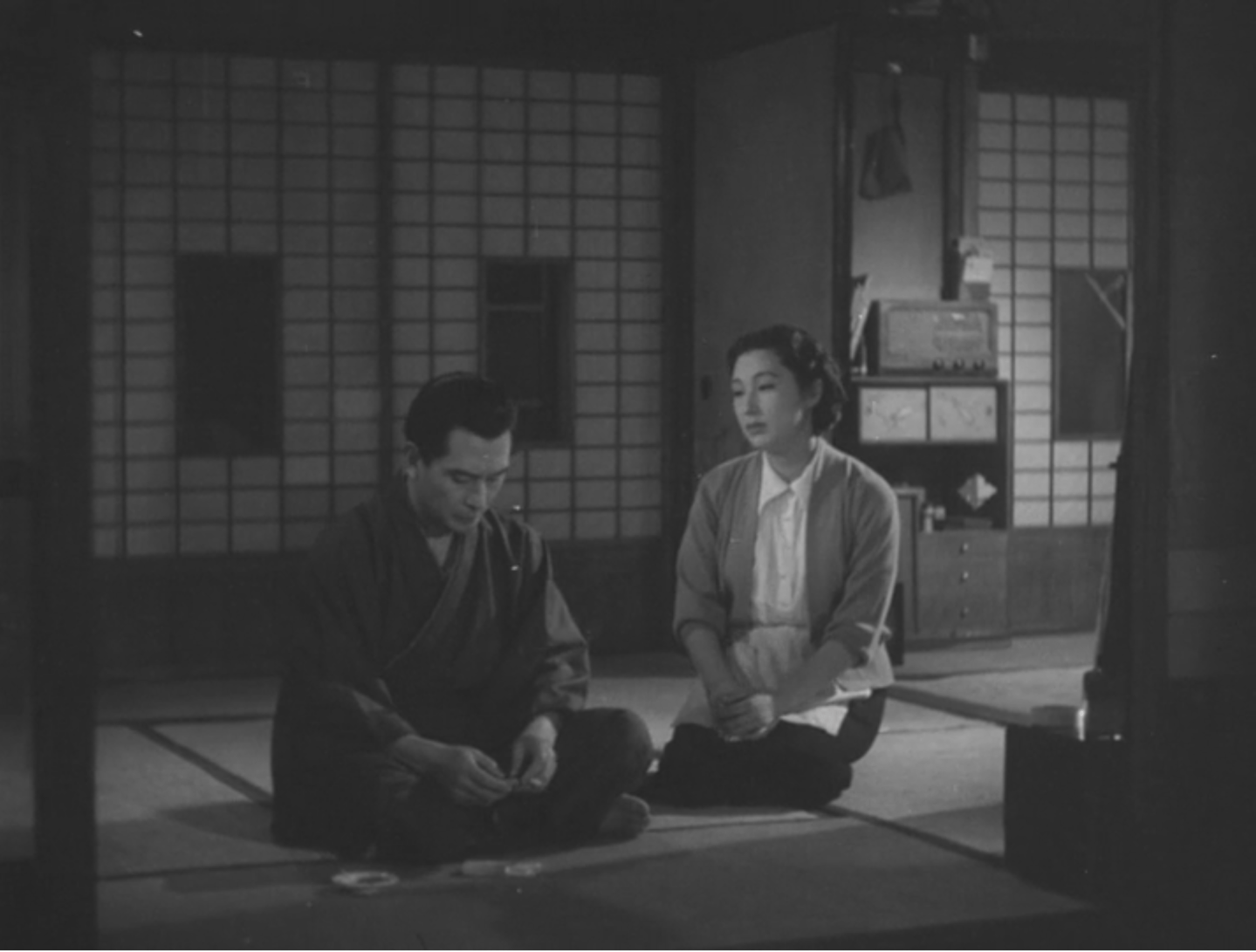 The peculiarities of life in Japan in 1953 place considerable strain on not only on the Nakagawas but on each of the other couples that we see. Those who married in haste during the war may be regretting their choices, while others, like Eiko (Chieko Nakakita) who rents the upstairs room with her husband Matsuyama (Hajime Izu), complain that the men they waited so long for came back changed. That Matsuyama cannot find a job in the difficult economic circumstances of the post-war society may not be his fault, but the necessity of relying on his wife for economic support has nevertheless eroded his sense of masculinity and left him a resentful drunk, destroying his wife’s love for him. Mineko is slightly scandalised when another tenant, art student Tanimura (Rentaro Mikuni), reveals that Eiko works not in a store but in a bar in Ginza, that being in truth the only kind of job that pays enough to support a married couple and a mother-in-law that a woman can get in 1953. Eventually Eiko leaves her husband, something else that scandalises Mineko, and resolves to live an independent life rather than remarry.