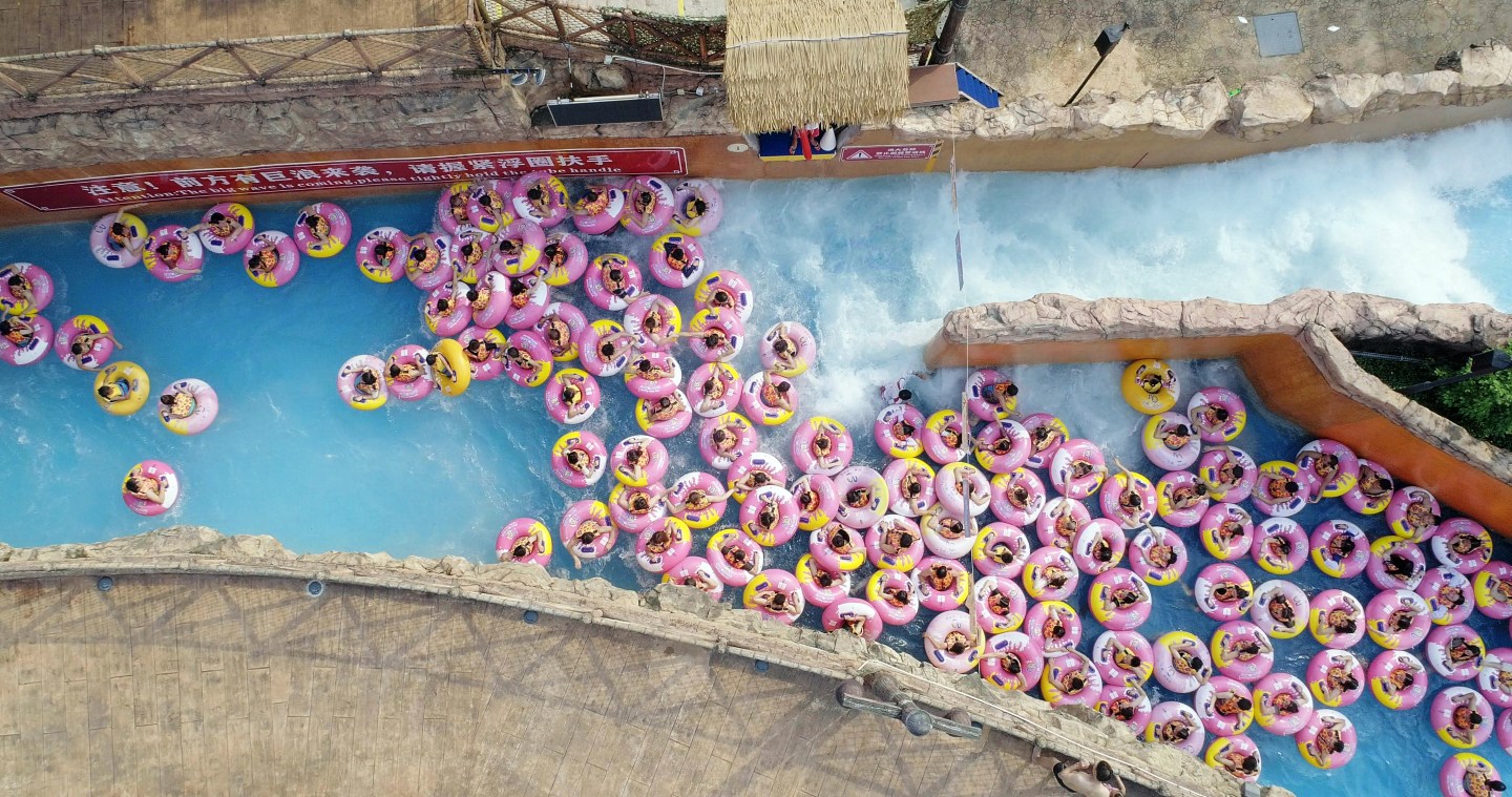While a woman plumps pillows in a fancy hotel suite, painstakingly stripping a rose of its petals to place on a pair of towels folded into the shape of a swan, the wealthy enjoy leisure time at a huge water park which boasts a tunnel ride through the aquarium where “mermaids” swim alongside sharks and stingrays. Others ride a literal “lazy river” sitting in rubber rings styled like frosted donuts. Guests at a fancy French dinner praise American freedom, while others complain that Westerners criticise China’s human rights record but how can you think about human rights when you’re so poor your entire existence is occupied with survival? Billboards at street crossings bear footage of other people crossing, while a picture of Xi Jinping sits in the corner of a garment factory where they sew clothes embroidered with the logo “Keep America Great” and another worker rolls her eyes at claims the place is haunted. China’s greatest export, it seems, is irony. Kingdon’s beautifully composed shots add to the sense of absurdity as does the score veering from eerie synths to jaunty theme park music implying that the entire nation has in a sense become a playground for the rich and powerful built on wilful exploitation and the thoughtless cruelties of intense consumerism.
