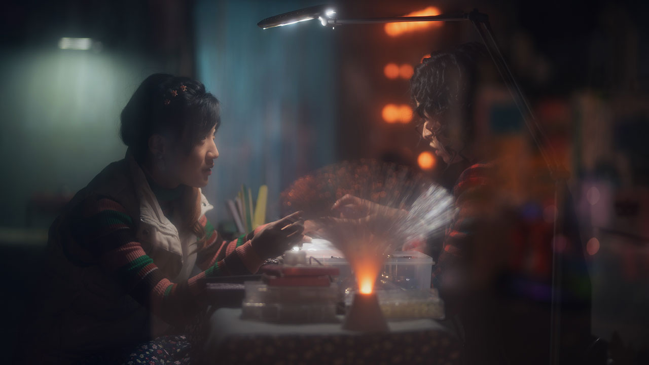 Wei is, in part, satirising the recent trend in Chinese indie cinema for gritty stories of rural poverty usually filmed with depressing naturalism determined to stress the harshness of life outside of the cities amid the nation’s ever increasing wealth divide. The first chapter in part does this too, later shifting away from early Jia Zhangke towards the neon yearning of Wong Kar-wai but always undercut with a sense of meta irony not least in its choice of heroine. The infinitely cornered Gu (Huang Miyi) longs for “a different life”, trapped in an unsatisfying marriage to a gruff man she accuses of working night shifts to get away from their toddler daughter whom she is forced to take to work with her while he constantly undermines all her parenting decisions based on articles sent by his mother. A woman at the market coos over the baby and asks when the next one’s due, Gu crestfallen realising she’s trapped in this small-town existence where nothing ever happens. But then the film crew begin to notice her, telling her she has a “real cinema face” and likening her to Kim Min-hee of whom she has never heard. Their admiration is again ironic, considering they were looking for the authentic face of rural China but taken with this cinematic vision, yet it’s also callous and cruel. They give her false hope, allowing her to dream as she puts on makeup and models costumes only to be forgotten once again when the “real” actress arrives, cast back into a life of quiet desperation.