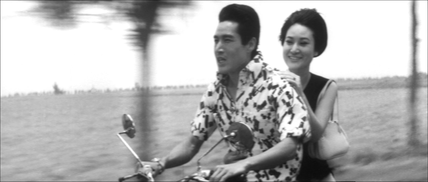 As the film opens, Khue-guan (Shih Ying) is cheerfully riding on his motorcycle with his current girlfriend on the back behind him, only the trip comes to an abrupt halt when the bike, a symbol of his freedom and independence, gets a flat tire. The pair pull over to a roadside garage to get it fixed and wait in a nearby cafe where they’re served by waitress Tsing-bi (Cheng Hsiao-Fen) who happens to be the owner’s daughter. While they’re waiting, Khue-guan’s girlfriend contemptuously dumps him, complaining that his bike is always breaking down and she’s decided to marry a financially secure engineer while attempting to palm Khue-guan off on Tsing-bi who ironically has a haircut quite like hers and is dressed almost identically. Khue-guan tries to change her mind, but she reminds him that marriage is “a woman’s meal ticket” so why would she or anyone else for that matter marry a poor delivery boy if a better offer came along?