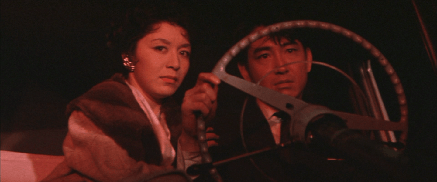 “I can’t stand it anymore” Ryuta finally exclaims, “There’s neither righteousness nor rules among mobsters”, tipped over the edge by the gang’s plan to kill the teenage witness. He wants out too, but considers himself already too far gone while pulled in two directions in his desire to save both his brother and his young son who has a lame leg and is being cared for in a hospital. Ryuta wears his wedding ring throughout though there’s no mention of what happened to his wife, while he’s also pulled between two potential love interests in the sympathetic doctor who cares for his son, Sumiko (Yumi Shirakawa), and the brassy cabaret girl, Rie (Mitsuko Kusabue), who does her best to save him, but in the end is never very much interested in either of them. He’s constantly haunted by his crimes, knowing what happens to yakuza who fall from grace in his murder of a man who limped and walked with a crutch just like his son.