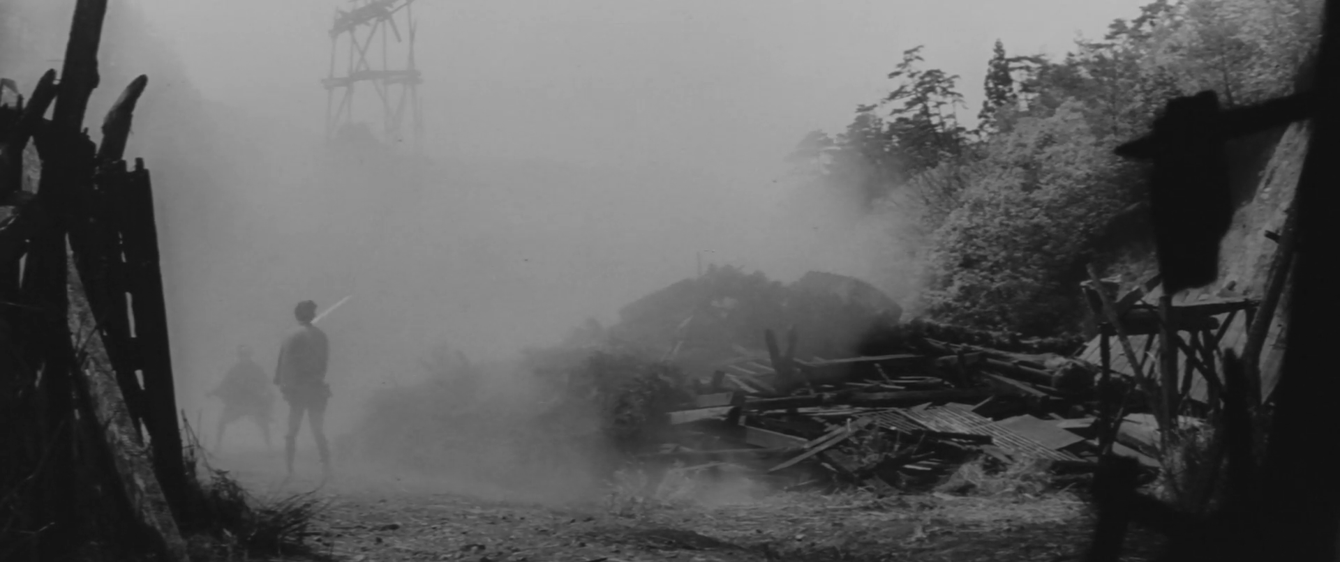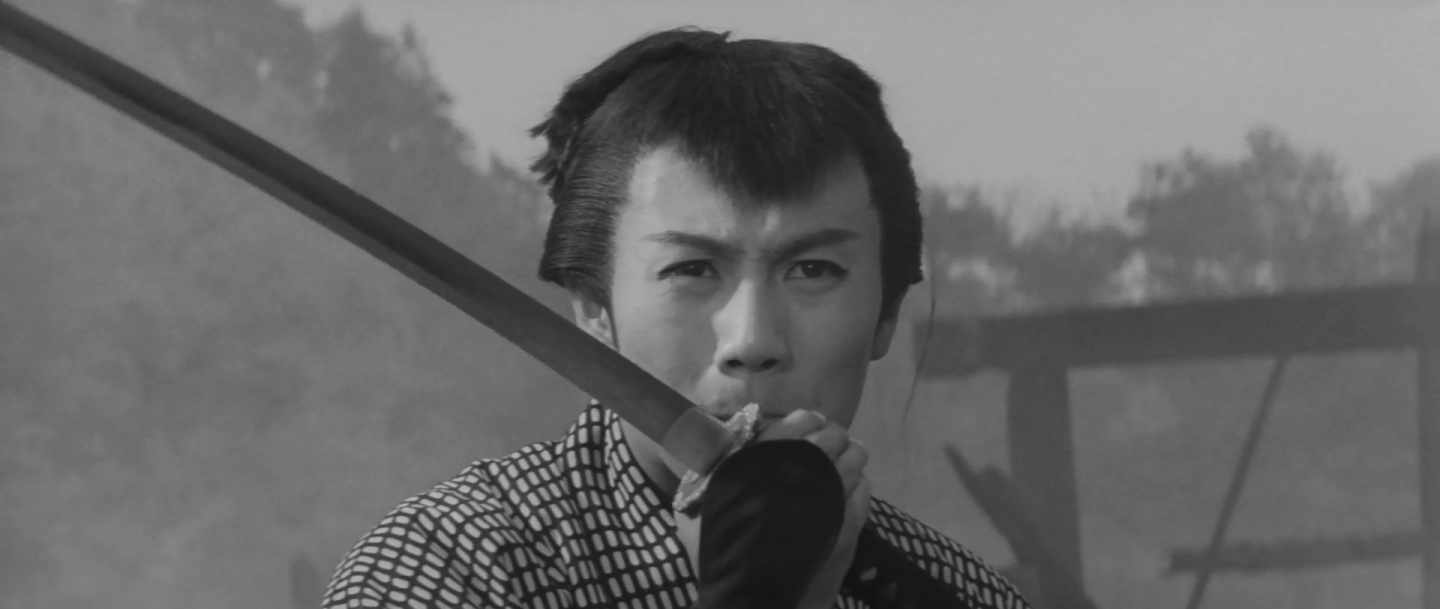 In this case, the hero isn’t so much standing up to injustice in the corrupt Edo-era society as standing up for love, exorcising his guilt over having been unable to protect Oshima by ensuring that Tokunosuke and Onaka’s romance is allowed to blossom. Even so, Onaka eventually concedes that his eyes frighten her while he remains trapped in the past reassuring her that he is aware she and Oshima are not the same and has no desire to intrude on her romantic destiny. The final showdown literally takes place in the ruins of the destroyed society as the trio take refuge in an abandoned village, an entire house later collapsing as Masakichi fights off Tohachi’s goons while beset by a heavy mist. Making frequent use of dissolves and canted angles to reflect Masakichi’s listlessness and sense of despair along with a couple of songs performed by Yukio Hashi, Ikehiro’s jidaigeki drama is an unusually romantic affair as the hero stands up to injustice only indirectly as means of rescuing love from the oppressive corruptions of Edo-era society.