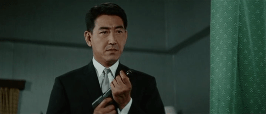 Now calling himself Yashiro, Kageyama (Koji Tsuruta) runs a swanky bar in Kobe and is in love with his pianist Yoko (Eiko Muramatsu) who is also, though she doesn’t know it, the daughter of a former associate back in his yakuza days whom he apparently killed for otherwise unclear reasons leaving Yoko and her mother alone and defenceless in Manchuria during the evacuation at the end of the war. When a mysterious man arrives and explains he’s from “Hayami Industries”, Kageyama is reluctant to listen but eventually forced to accompany him to Tokyo where he is led into Hayami’s rather swanky new office complete with electronic displays and workers positioned in tiny booths. Since the end of the war, Hayami has become a “respectable” businessman running some of Asia’s most prestigious hotels in addition to a chain of casinos. Yet his real business is of course in drug smuggling, which is a problem because the guy he put in charge of the Hong Kong route has drawn the attention of the police. He makes Kageyama an offer he can’t refuse ,much as he tries, to take it over. He accepts on the condition it’ll just be a one time thing.