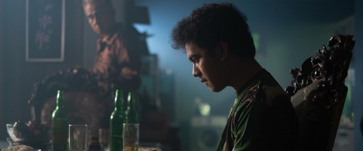 19-year-old Kib (Kevin Ardilova) lives alone in a vast mansion, the country home of a former general, Parna (Arswendy Bening Swara), who soon arrives unexpectedly with the intention of beginning his political career. Kib is quite obviously awestruck by the figure of the General, gazing at him like some long lost saviour drunk on the sense of power he exudes from every pore. On silently collecting the old man’s laundry, he stops to stare at a large portrait of him in uniform on the bedroom wall as if somehow thinking he too could one day be a fine general wielding such infinite power for himself.