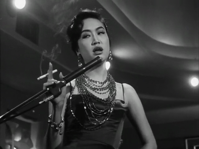 It’s with the man, Hanhua (Chang Yang), that we first enter the world of the EW Ritz cabaret bar. An “elite” English graduate, Hanhua has fallen on hard times and unable to find teaching work has been forced to take a job he sees as sordid and degrading as a pianist in a nightclub. He and his teacher fiancée Suxin (So Fung), literally the girl next-door, joke about it outside, Hanhua asking her if she’s worried about all the “pretty bad women” in such establishments and pointing at his engagement ring as an amulet of protection against predatory femme fatales. Once inside, however, he’s instantly captivated by the alluring singer, Sijia (Grace Chang), who nevertheless takes against Hanhua because unbeknownst to him he’s displacing her regular piano player, Old Wang (Lui Tat), who’s being let go by the greedy boss for showing up late because his wife is seriously ill.