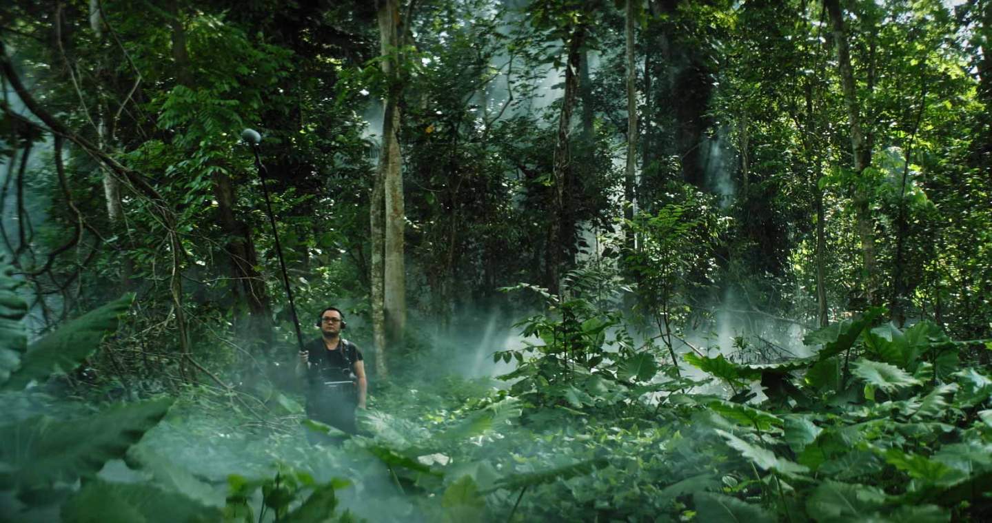 In any case, the first place we find the sound man is on the set of a gay porn film, an act of minor provocation against the conservative atmosphere of the Singaporean film industry. He then appears on a rooftop overlooking the city and on to the middle of a verdant forest where he’s later enveloped in mist. His passage seems random and etherial but also with some kind of hidden direction. He picks up fights behind the walls that hint at societal discord while offering silent comfort to those who appear to be in some kind of despair, a young woman performing an emotional dubbing script pleading with her elderly father to remember her much as the sound man hopes someone will remember him.