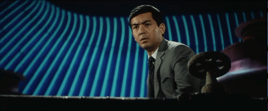 This slightly tongue-in-cheek use of spy movie cliche is in keeping with the brand of humour often found in Toho’s ‘60s spy spoofs though this is largely a much more serious affair if one with an undercurrent of absurdity. The hero, Toda (Yuzo Kayama), is an Olympic sharpshooter working for the Tokyo police before he is abruptly asked to resign so that he can take part in a “special mission” which turns out to be as a backup bodyguard for Jakar who has been smuggled out of his home nation and intends to defect to America which has, it is implied, been backing his regime as a bulwark against communism in Asia while his rise to power was facilitated by Japanese soldiers who stayed in the country after the war. He’s supposed to be staying for a few days in a top hotel while the Americans figure out the paperwork for him to seek asylum at their embassy but the top brass are worried the revolutionaries might try to assassinate him on Japanese soil which would be very bad for diplomatic relations and potentially create political instability across the continent.