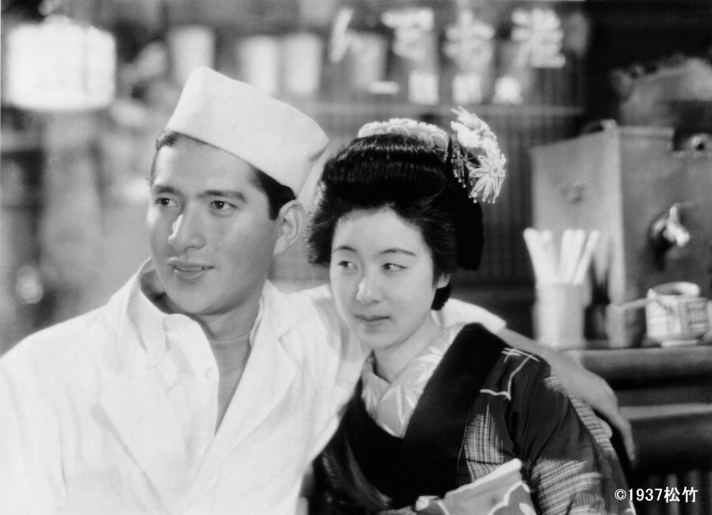 Yoko (Kinuyo Tanaka) is the “kanban musume” of her father Keizo’s (Reikichi Kawamura) pork cutlet restaurant, attracting customers with her charm and beauty while the Chinese chef her father brought back with him from Shanghai, Lee (Shin Tokudaiji), is the culinary star. Lee is secretly in love with Yoko whom he continues to refer to largely as “the young lady” and has long been writing an ode in her honour. Yoko meanwhile is in love with a penniless student, Ono (Shuji Sano), who at the beginning of the film has just returned home after visiting his family whom he has alienated by declaring that he doesn’t want to work in an office in the country while refusing an offer to marry into another family as an adopted son-in-law. The reason for this is less his pride than his desire to stay in Tokyo amid the bright lights of Ginza, sighing as he looks out into the neon-lit night gazing at adverts for Club Hamigaki toothpaste and Meiji Chocolate. The second reason may also be that he’s fallen for Yoko but given his precarious financial situation and lack of prospects does not quite dare to imagine a future with her.