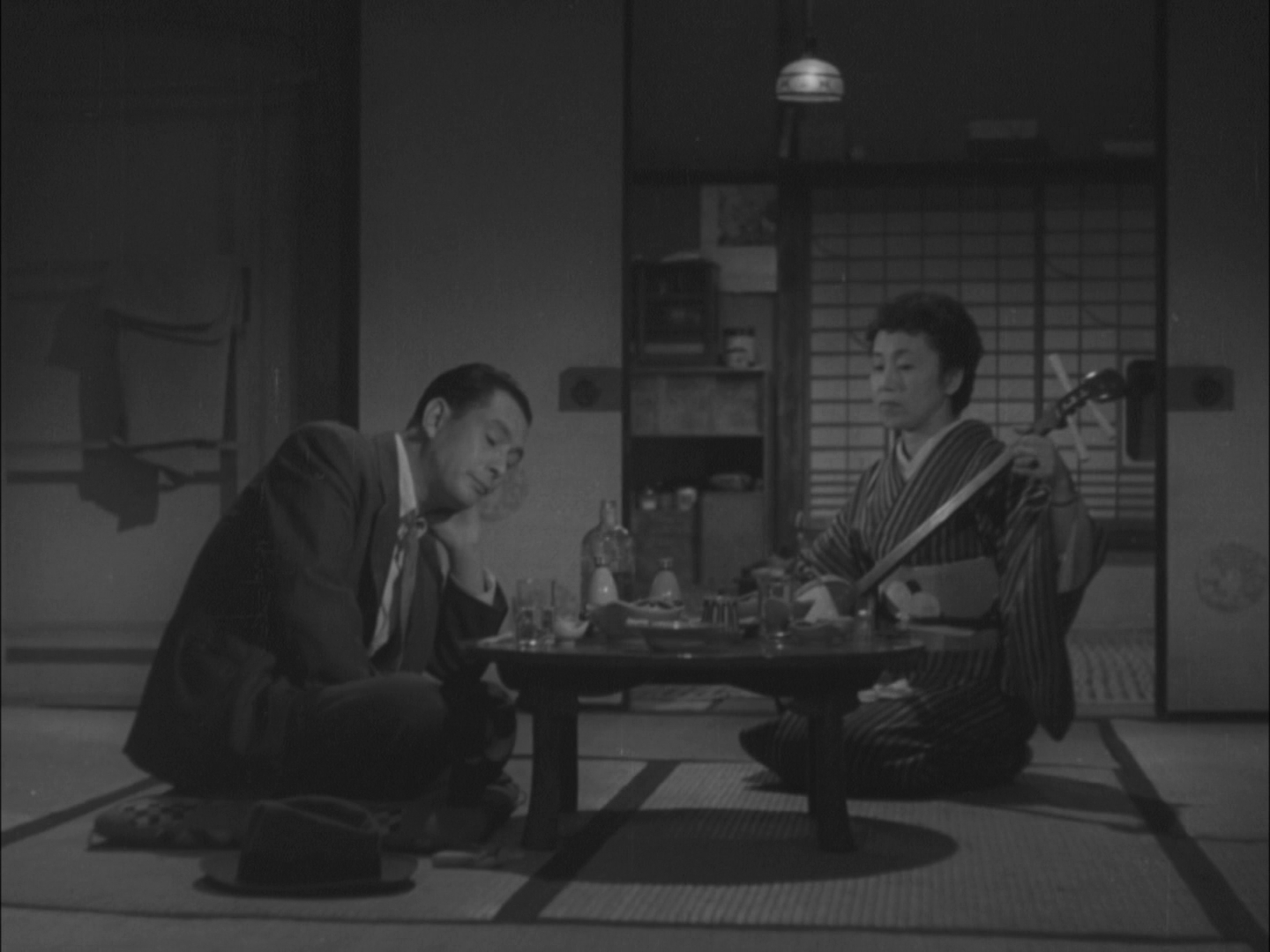 Otamae’s problem is of the opposite order. Her son Kiyoshi cheerfully rolls home in the morning after staying out all night and tells her he’s become a kind of gigalo, dating a slightly older woman who is technically the kept mistress of another man. The situation is ironic in the extreme, but despite her own past as a geisha, Otamae doesn’t like it that her son is engaging in a compensated relationship, while he suggests that perhaps she messed him up by making him refer to her as his sister in public. Eventually Kiyoshi is offered a job in a mine in Hokkaido, salmoning the post-war migratory movement and leaving his mother (as well as the mistress) behind to fuel the economic recovery from the provinces.