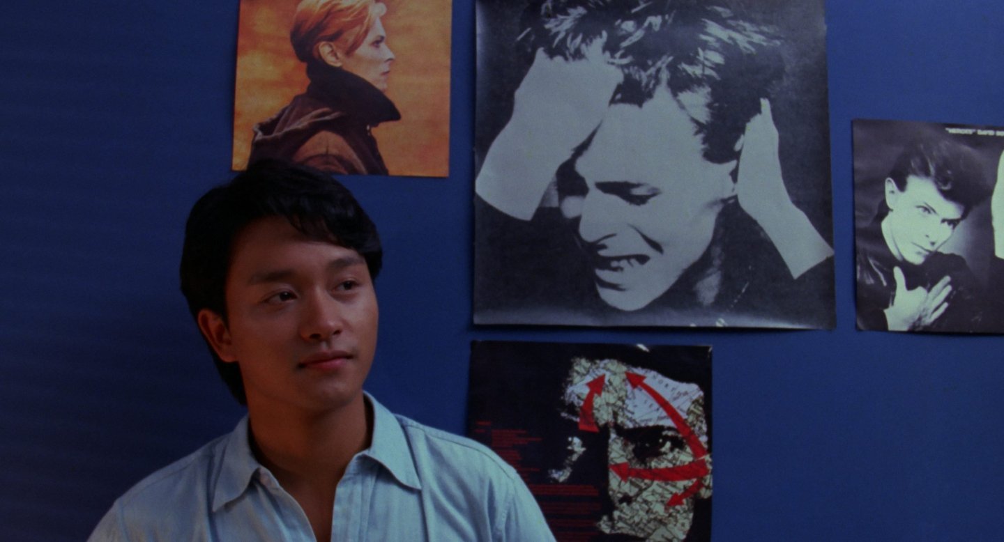 Nomad similarly focusses on a collection of aimless youngsters struggling to find direction in pre-Handover Hong Kong. Louis (Leslie Cheung Kwok-Wing) continues to long for his absent mother and often listens to recordings she once made introducing classical music on the radio while a model of the Nomad sits prominently on a shelf in his room. He has posters of David Bowie on the wall, while his cousin Kathy (Pat Ha Man-Jik) puts on the robes of a Japanese Miko and performs a traditional fan dance. Louis is one of the few young people who does not speak the language, but is later fascinated by the work of a Japanese fashion designer featuring swords and samurai armour that he says, in a moment of foreshadowing, only make him think of ritual suicide.