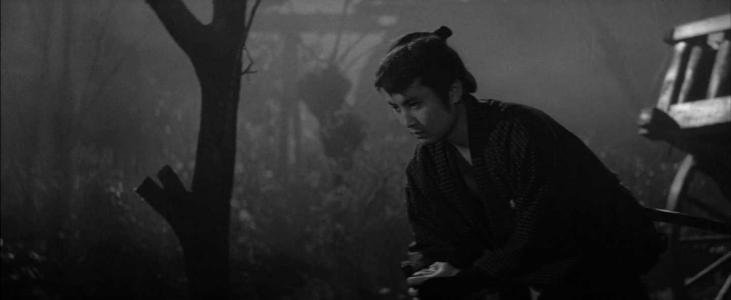 As he would continue to do, Kato instructed his cast not to wear makeup and while casting kabuki actor/chanbara megastar Kinnosuke Nakamura insisted on a more modern performance style than the sometimes mannered theatricality of the traditional samurai film. Ginji is cocksure young man living on the road after being kicked out of the hometown he is now travelling towards because of a crime supposedly committed by his long absent father. On the way, he runs into Sentaro (Rentaro Mikuni), a middle-aged man recently released from prison who is struck by his appearance and immediately asks how old he is realising that Ginji is about the same age as his own son who died as a result of a fight.