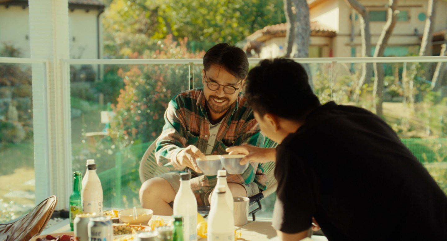 Yet for all that Gi-hong seems, as his friend describes him, “irresponsible” and self-interested, there’s childlike vulnerability in him that finds an outlet when he unexpectedly encounters a young woman he assumes is responsible for the sizeable dent in the roof of his van. Skittish in nature, Hana (Lee So-jung) is in someways earnest and others helpless. She has no home or family and is in that sense separate and in search of connection while Gi-hong seems to feel guilty about asking her to take responsibility for what happened to his van considering she has no means to do so though is doing her best. She assumes that Gi-hong, Jun-hwan, and Hyun-jun must be “family” considering that they share the same space and seems to want to join them in a separate but connected existence.