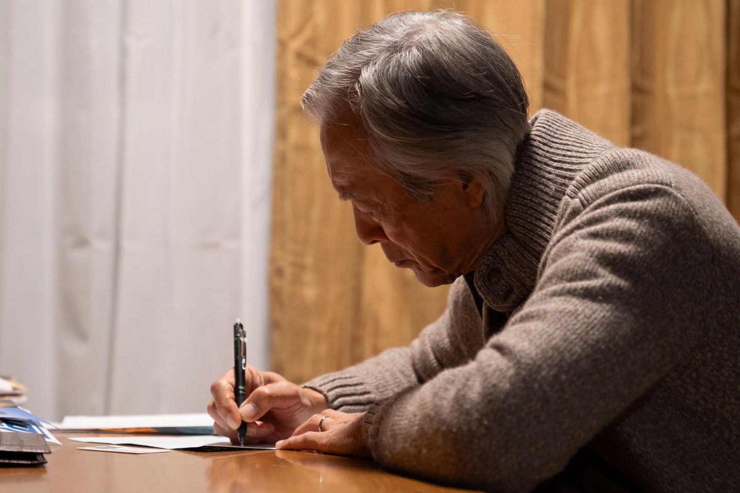 Kenji lost his wife two years previously having cared for her as she succumbed to Alzheimer’s. These days he likes to take a walk around the neighbourhood and then get on with his usual business though even he begins to realise that he’s become forgetful and is prone to doing strange things like leaving the remote control for the TV in the freezer. His son lives far away but is worried enough about him to install an iPad on the wall so they can call each other any time and he can also check in on him to make sure Kenji hasn’t had a fall or anything like that. But to Kenji it obviously seems like an imposition, his son’s basically spying on him and taking away his privacy along with a little of his independence. Satoru has also been checking out homes and recommends an organisation for elderly people where he can get health advice, stay active, and avoid social isolation.