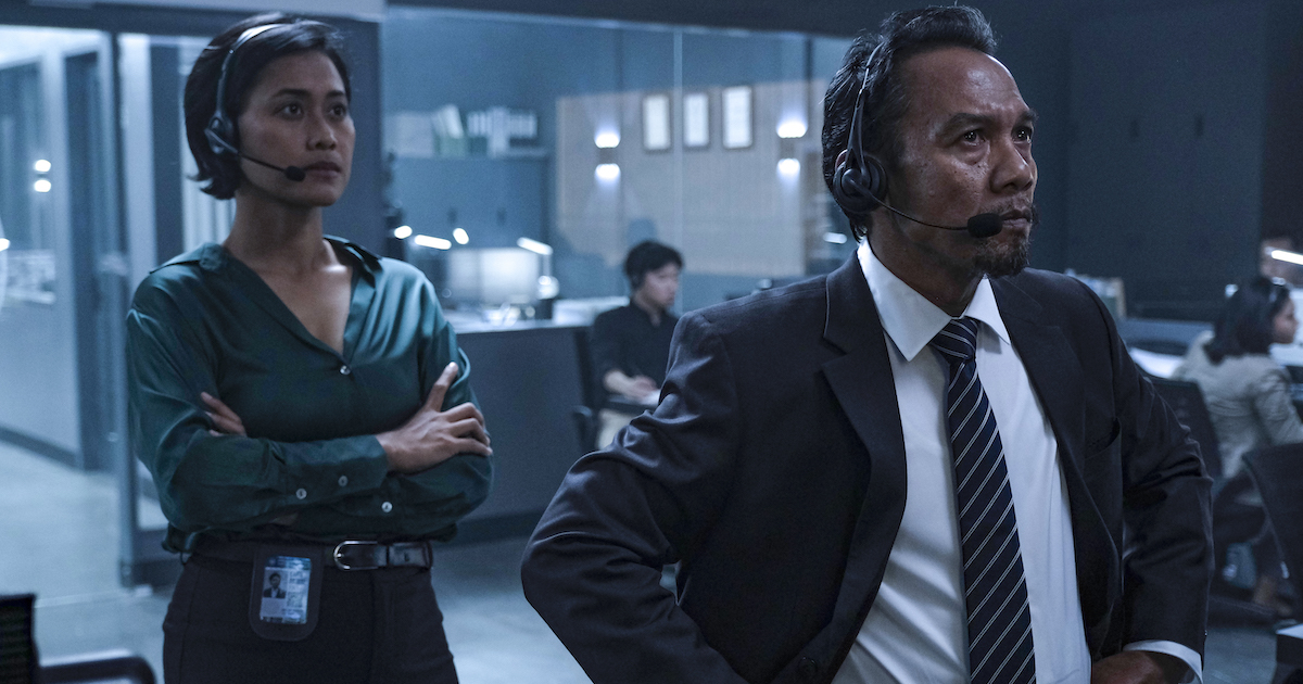 The police, or more precisely, the Counter Terrorism team, don’t come out of this very well. They’re originally quite reluctant to view the incidents as “terrorism” because that will make everything very “complicated” and also worsen the already precarious financial situation. They also seem to be fairly blindsided, arguing amongst themselves about the proper course of action with the sensible and reliable Karin (Putri Ayudya) often shouted down for relying too much on gut instinct as in her decision to trust bitcoin boys William (Ardhito Pramono) and Oscar (Chicco Kurniawan) only for them to immediately run away hoping to find the gang’s hideout for themselves after being disturbed by a strange message from the gang branding them as their allies.