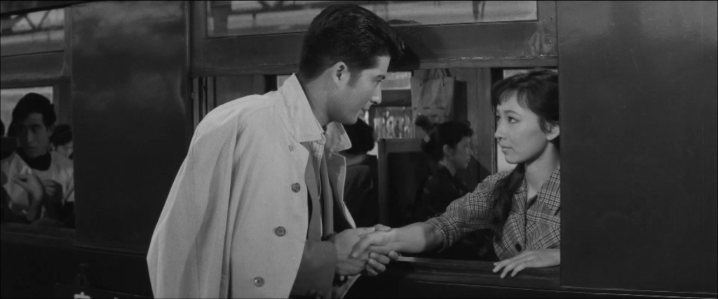 Spending some time in hospital following a failed suicide attempt seems to heal her in body body and soul, though the total about face in Katsumi’s feelings for Tsukida seems somewhat bewildering even if he did visit her every day and presumably win her over despite her resentment towards him for contributing to her parents’ deaths. Nevertheless, it’s his feelings for Katsumi that see Tsukida longing to quit the yakuza and retreat to the country to live a small, honest life with her free of the city’s corruption. But as so often in the movies, it’s not that simple and this time it’s a tragic consequence born of male failure and insecurity that eventually costs him his shot at a normal life even as his frenemy, a local policeman he often sees in the same bar and gives him unsolicited advice about how he should quit the yakuza, remains surprisingly supportive suggesting that his redemption may merely be on hold rather than cancelled. In any case, though shooting almost entirely on stage sets, Ushihara makes good use of stock footage of contemporary Ginza as a place of bright lights and equally dark shadows where gangsters lurk on every corner and mercy is in desperately short supply.