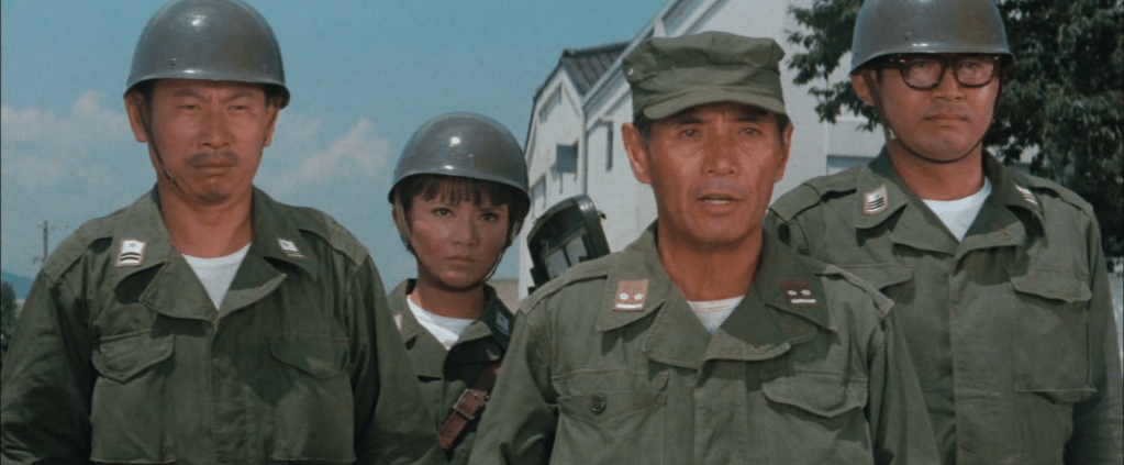 Despite its silliness and absurdity, the film takes an ironic swipe at serious issues of the day such as scandals like the Minamata disease and Mary Whitehouse-esque social campaigners ranting about a decline in morals while simultaneously enjoying the platform that protesting them grants them. In some ways, the gang themselves exist as a kind of rebellion against the salaryman society with their various scams presented as silly games targeting faceless or ridiculous figures who can either afford to lose the money or were ripe for a comeuppance though in the end, crime doesn’t really pay either and the gang find themselves hoist by their own petards, robbed of enjoying their ill-gotten gains by unexpected twists of fate. Very much of its time the film has a kind of charm in its whimsical score and pastel colours but has lingering darkness in its threats of unexploded bombs and hidden Okinawan torture facilities in a society increasingly ruled by amoral capitalists.