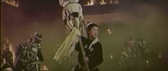 Hibari Misora puts out the fires of the Bakumatsu in another musical jidaigeki adventure, Girl with the Fire Banner (唄祭りかんざし纏, Utamatsuri Kanzashi Matoi). Once again co-starring with Chiyonosuke Azuma, Misora plays another feisty young woman taking over the family business from a sickly father only this time the business is the fire brigade and while she calmly points out to those of a differing opinion that firefighting is an equal opportunities, apolitical occupation, she also finds herself at the centre of a coming revolution caught between corrupt Shogunate loyalists and the imperialist advance.