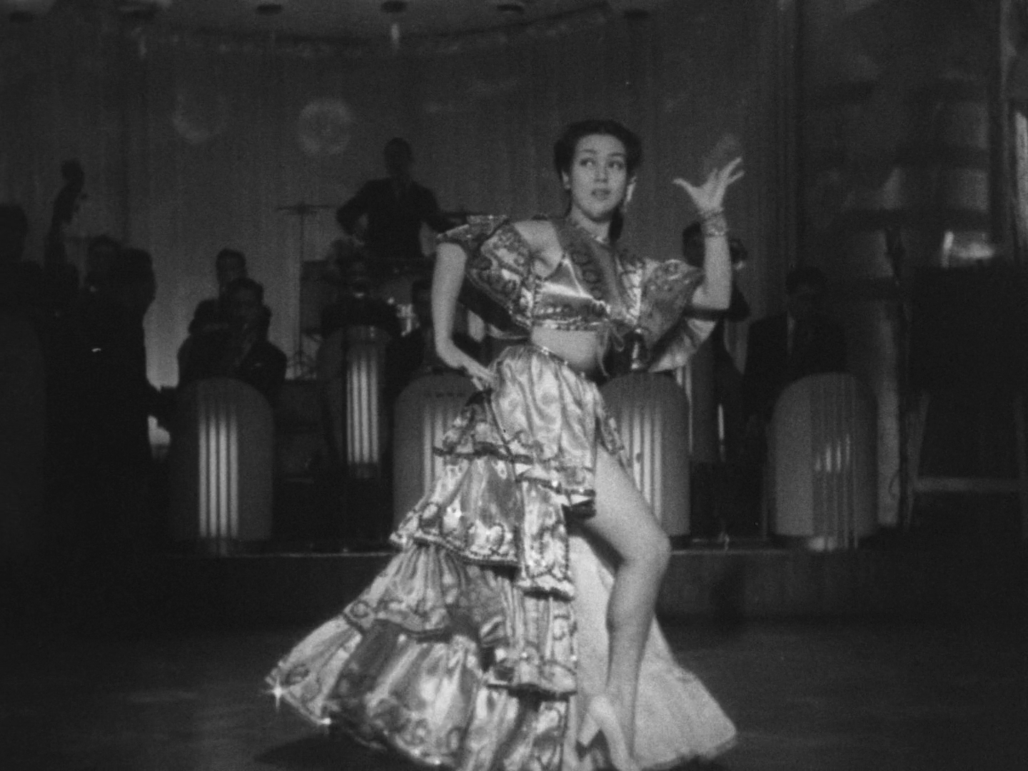 This sudden influx of children at rush hour is another symbol of the destabilisation of the post-war society in which the war orphans try to support themselves amid the still difficult economic environment. The lack of economic opportunities is also posited as a reason that the deceased, later identified as Kaneko, may have turned to crime by getting involved with a criminal gang smuggling drugs and money to destabilise the society even further. Yet the rot may have set in a little earlier than that. Before the war, Minagawa had wanted to marry Michiko (Machiko Kyo), the sister of his friend Sekiguchi (Toshiaki Konoe), but she later threw him over to marry the wealthy son of a family running a pharmacy. She admits she married him for the money, but after the war he lost everything. Unable to find work, Kaneko became a wastrel while Michiko gained employment at a cabaret bar as a dancer. He told her that he’d found a job at a company, but this turned out to be a lie and chief investigator Fujimoto (Takashi Shimura) assumes he must have been working for the gang.