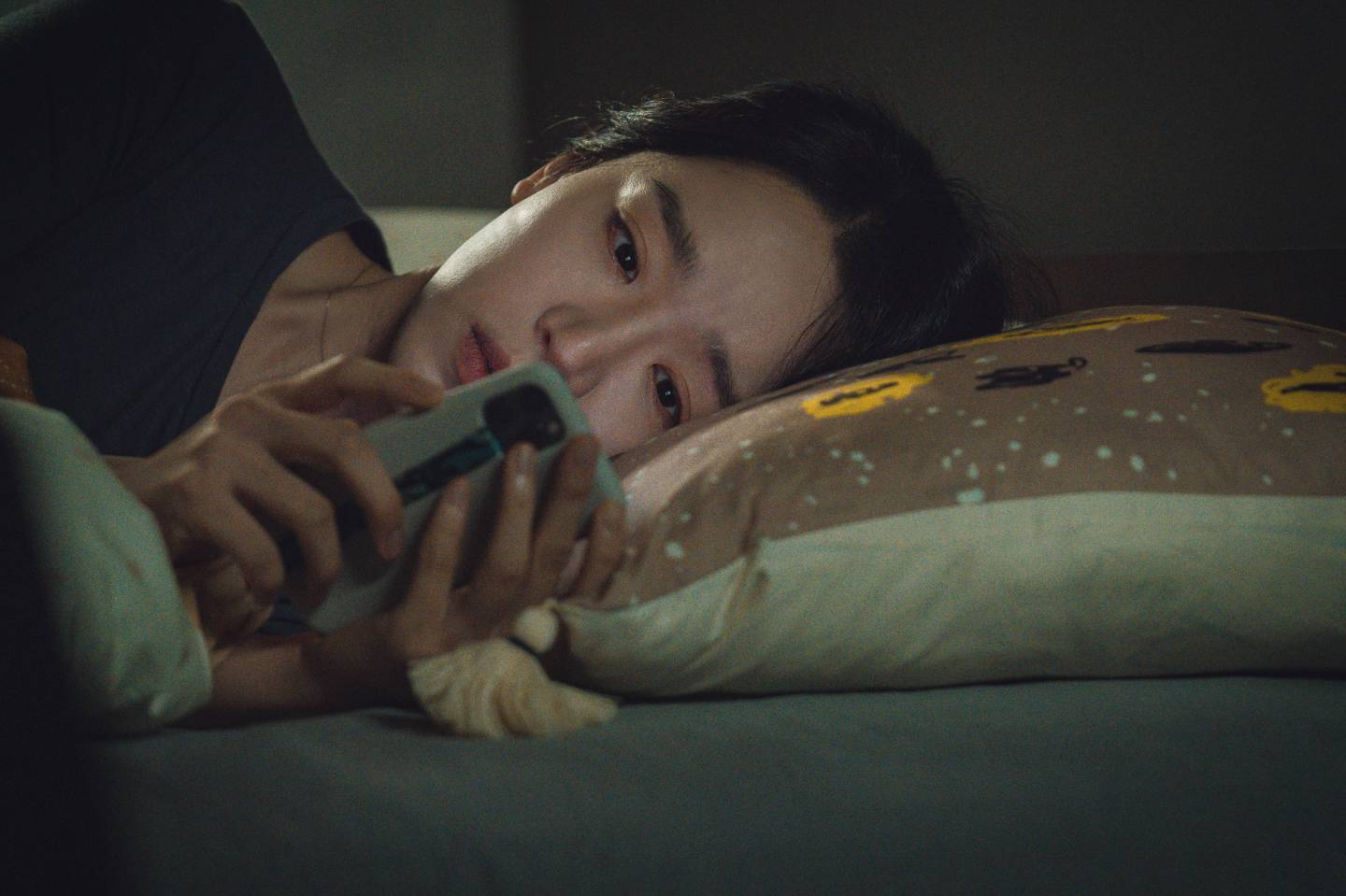 In this way, the stalker becomes an avatar of patriarchal male violence that slaps Soo-hyun right down in her place. She begins to feel insecure in the domestic environment as the stalker sends her nuisance deliveries of fast food at all hours of the day and night along with strange men who’ve been told to visit her for a good time and have evidently been given the code for the door lock. She’d only moved in here a week ago and moving out will incur a financial penalty she’s not well equipped to pay having been scammed in the first place. But the police seemingly can’t do anything while Soo-hyun is plagued by a sense of threat and unease that this person has so much control over her life and could turn up to cause her harm at any moment. Suddenly, she’s not a woman who answers back anymore but a timid and nervous zombie who can barely speak at all.