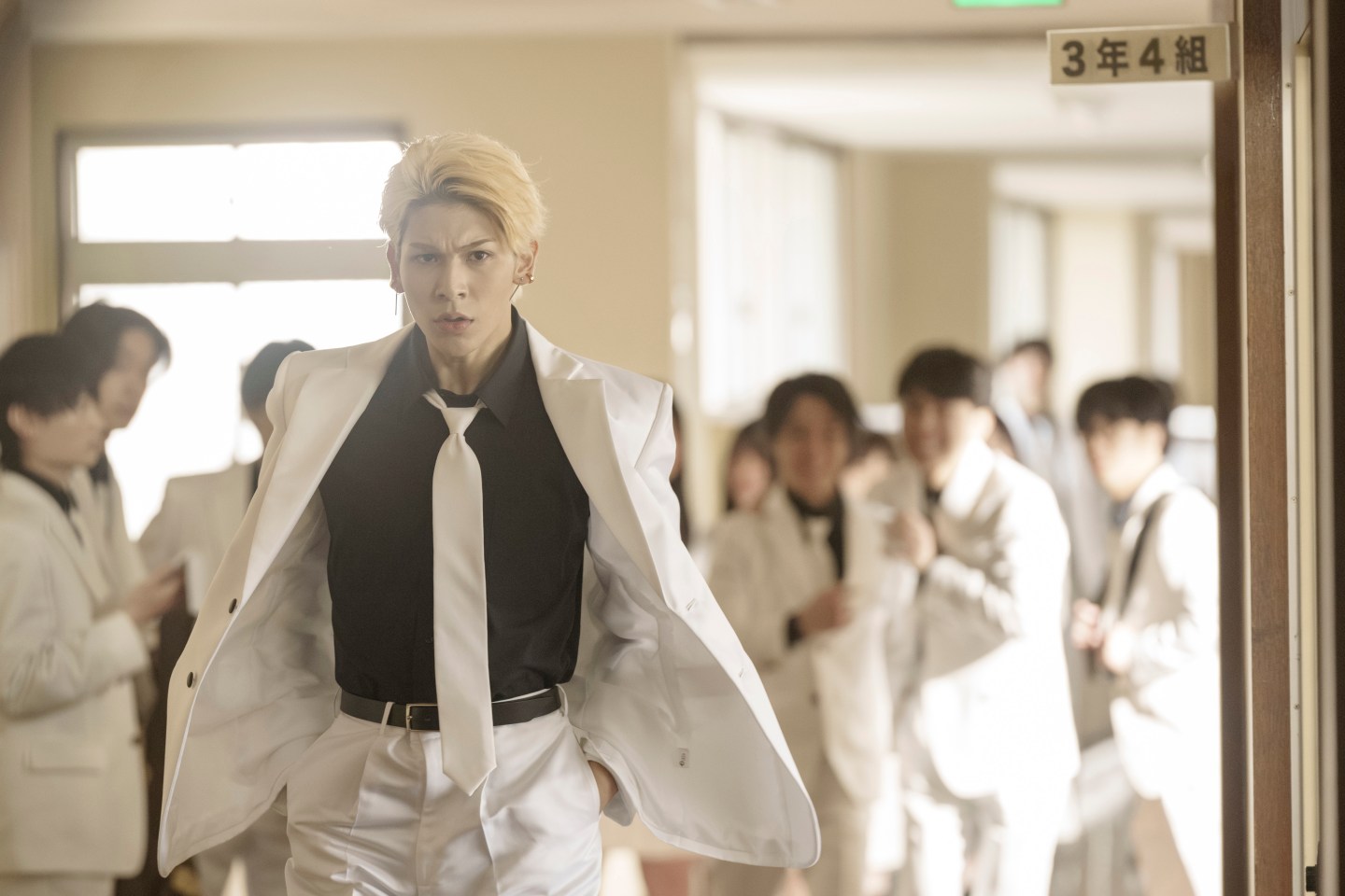 She certainly appears to have no skills of her own other than her ability to quote legal infractions in her desire to become a lawyer like her adopted parents. While this may on some level remove her agency in making her dependent on her classmates for protection, it’s also Akabane that takes the initiative in romance by making overtures to the otherwise diffident Ibuki. Other the other hand, she’s painted as the mirror image of her sister, Masachika (Tao Tsuchiya), who has been raised as a boy and taught to be an assassin but craves the kind of love and affection Jingu pours on Akabane.