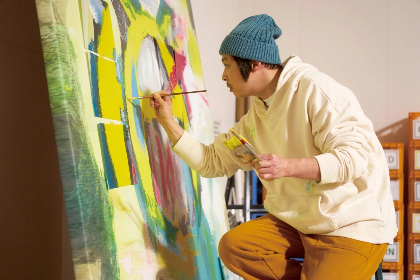 But his colleague asks if he sees himself more as a worker than an artist, as if she were unintentionally making a value judgement on the nature of art. The line between artist and artisan maybe so thin as to not exist, but why is it that we think of art which is perceived to have a practical application differently from that which we assume is intended only as a means of self-expression? “What about your own art?” she asks Sawada, but he doesn’t really have a notion of it because he’s been so focussed on earning a living as part of a wider capitalist superstructure in which art too is a commodity. Akimoto (Kotaro Yoshida) is basically running an art sweatshop mass-producing pieces for an international market and operating it like a brand in which everything is released under his own name. When Sawada falls off his bike and breaks his dominant arm, Akimoto simply fires him.