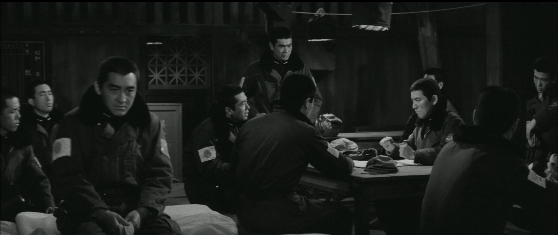 When one pilot, Nanjo (Isao Natsuyagi), returns to base having been unable to reach his target, he’s immediately set upon by the others as a coward and a traitor. They accuse him of being afraid to die, leaving him feeling ashamed and frustrated by a sense of injustice while admitting that he didn’t want to die like a dog. He knows that he would not be able to go on living afterwards if he simply didn’t go through with it because the stigma of being a coward who let other men die so he could live would always be upon him. Eventually, he becomes so determined to prove himself that he insists on getting right back in his plane once it’s repaired and then blows himself up on the runway to prove a point.